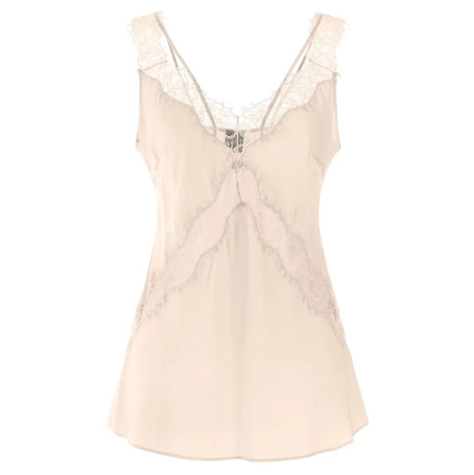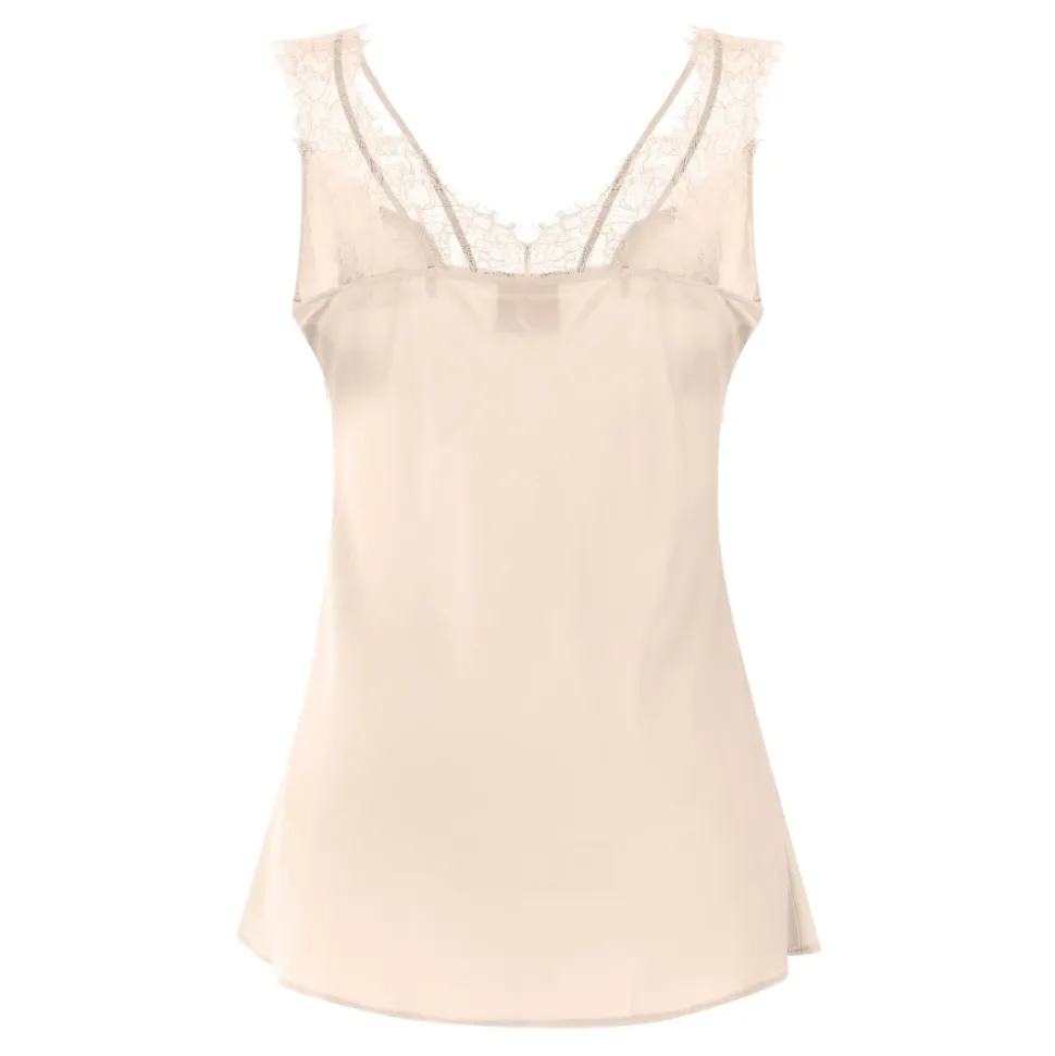 PINKO Lydia Viscose Twill Top har tone-i-tone blondeindlæg og en V-hals med dobbelte skulderstropper, hvilket giver et raffineret valg til både dags- og aftenlook. Nøgleattributter: Pink | Viskosetwill | Dobbelt skulderstrop | V-hals | Tone-i-tone blondeindlæg | Dimensioner og pasform: Normal pasform.