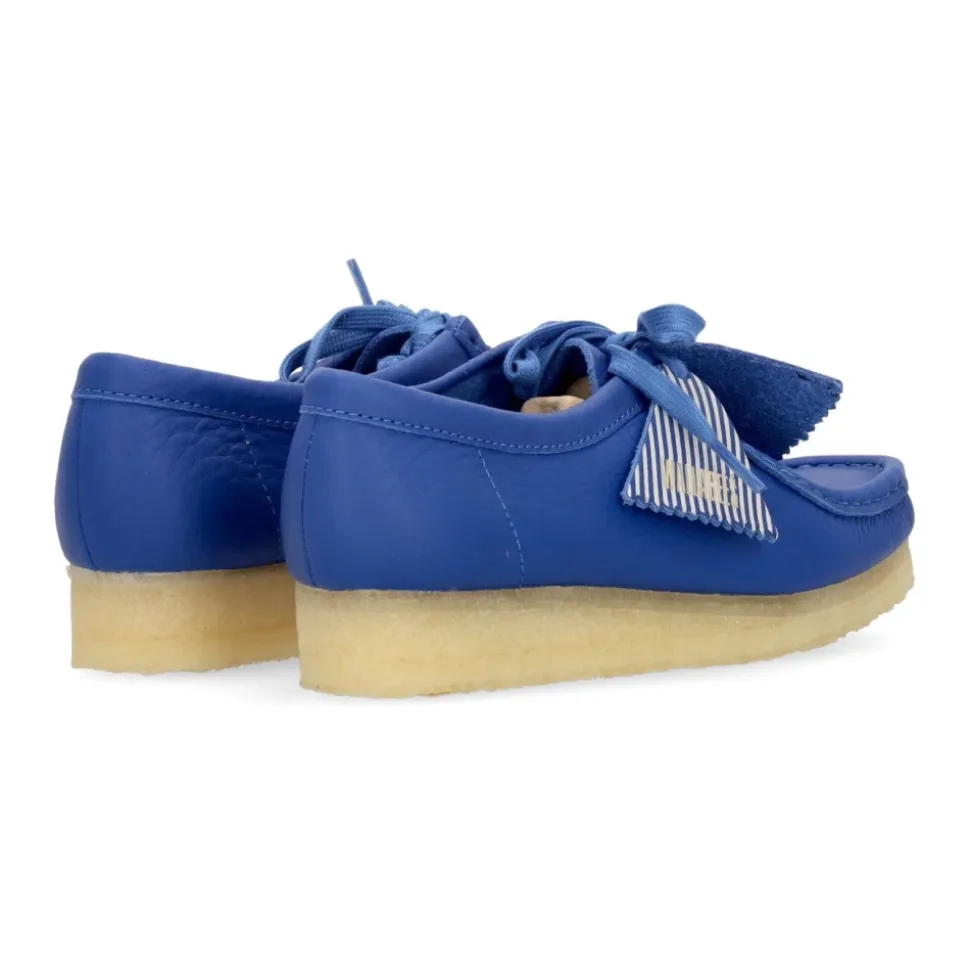 Oplev den perfekte blanding af stil og komfort med Clarks Lyseblå Læder Wallabee Lifestyle Sko. Disse snøremokkasiner er designet til hverdagsbrug og har et karakteristisk trekvart logo-stempel på et påsat mærke. Produkt detaljer: Lyseblå | Blå | Læder | Snørebånd | Trekvart logo-stempel | Påsat mærke | Dimensioner og pasform: Almindelig pasform | Sammensætning og pleje: Læderoverdel | Gummisål | Ruskindssål | Aftørres med en fugtig klud