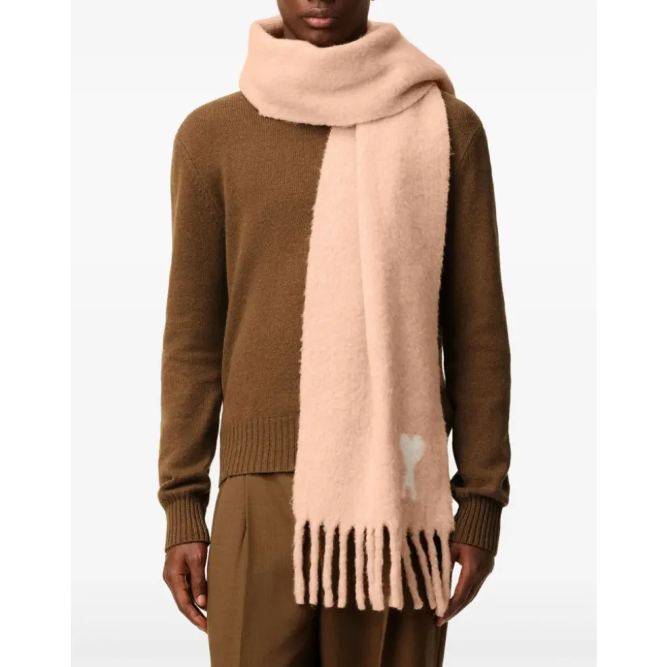 Forkæl dig selv med dette pudderrosa jacquard Ami de Coeur logo tørklæde fra Ami Paris. Med frynsede kanter og rektangulær form er dette tørklæde et must-have tilbehør til kvinder.