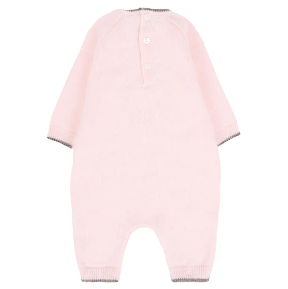 Lyserød uldromper med bjørneudsmykning