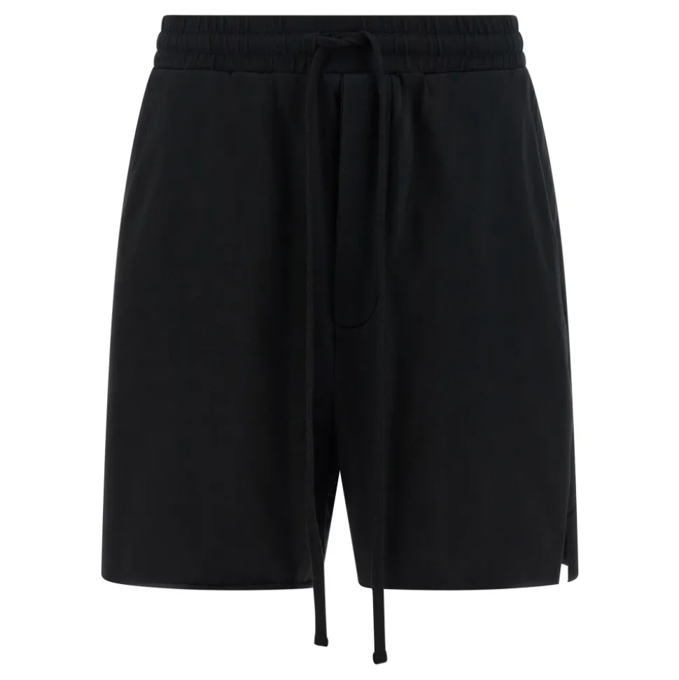 Thom Krom M ST 513 Shorts er stretch bomulds-jersey bermudashorts med tone-i-tone strukturerede indsatser og en asymmetrisk rå kant, designet til hverdagsbrug og let træning. Nøgleattributter: Sort | Bomuld | Stretch stof | Elastisk taljebånd med snøre | Knapklap | Lommer | Sideslidser ved kanten | Tone-i-tone strukturerede jersey indsatser | Asymmetriske benkanter | Rå kant | Bermuda længde | Dimensioner & pasform: Normal pasform | Sammensætning & pleje: 94% bomuld | 6% elastan | Kant: 100% bomuld