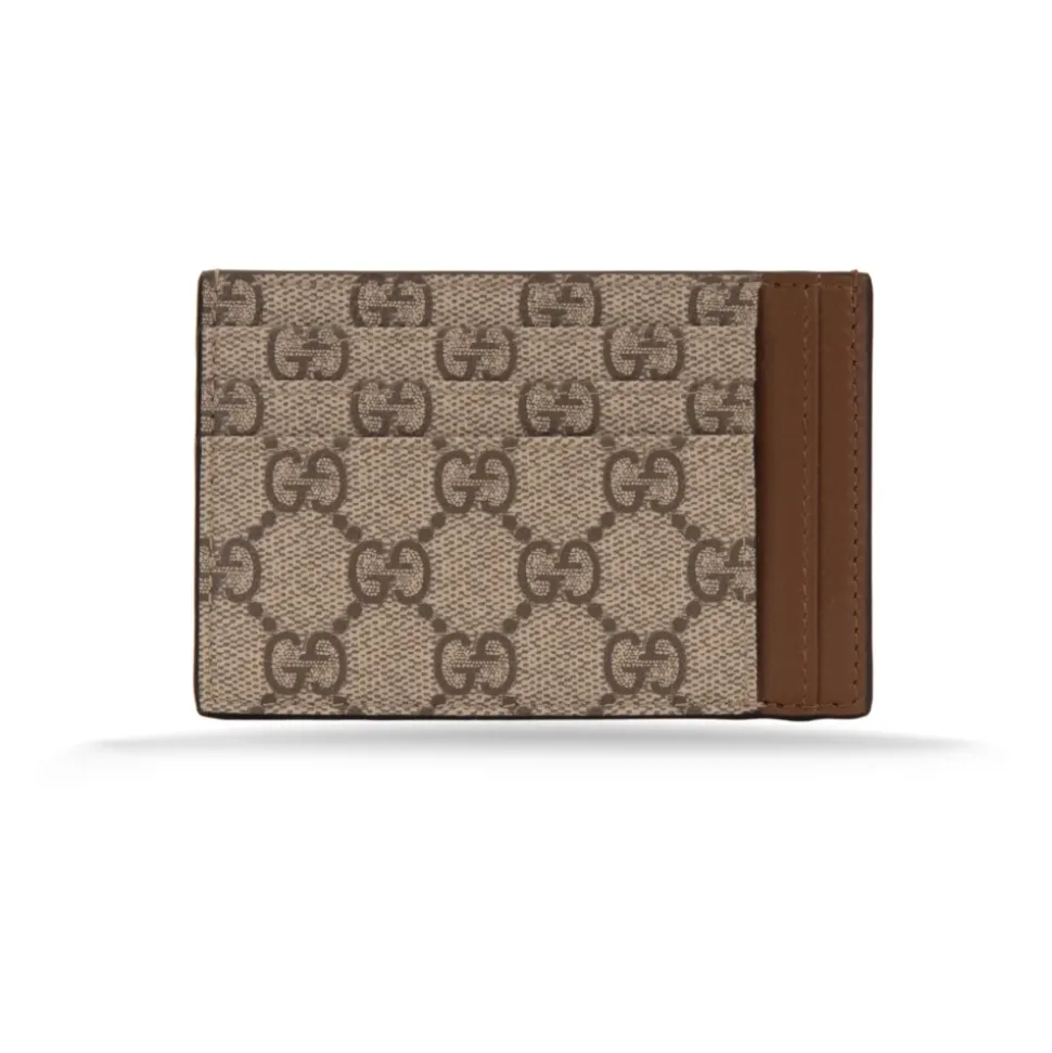 Gucci Maxi GG Card Holder i læder, designet til organiseret hverdagsbrug. Den skiller sig ud med sit kontrasterende ‘GG’-emblem og praktiske kortopbevaringslayout. Vigtigste egenskaber: Beige | Marrone | Læder | Flere kort-/dokumentlommer | Centreret lomme lavet og foret i læder | Kortlommer foret i stof | Kontrasterende ‘GG’-brandinitialer | Yderside udelukkende fremstillet af læder | Dimensioner og pasform: Bredde: 12 cm | Højde: 8 cm | Dybde: 0,5 cm | Sammensætning og pleje: Læder | Stof (foring) | Beskyt mod direkte lys, varme og regn. Hvis genstanden bliver våd, tør den straks med en blød klud. Opbevar i den medfølgende støvpose eller æske. Rengør med en blød, tør klud.
