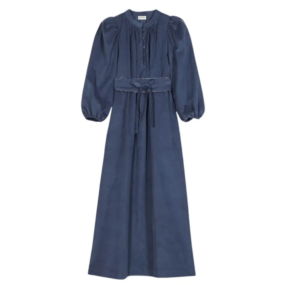 APOF Maya Kleid er en lang babyfløjls kjole i parisisk blå med ballonærmer og en markeret talje – designet til afslappet, efterårsklar hverdagsbrug med subtile skjulte detaljer. Nøgleattributter: Blå | Bomuld | Ballonærmer | Markeret/indsnøret talje | Piping detaljer | Skjult blomsterfor | Midi/lang længde | Blød babyfløjls tekstur | Dimensioner & pasform: Almindelig pasform – passer normalt. | Sammensætning & pleje: 100% Bomuld