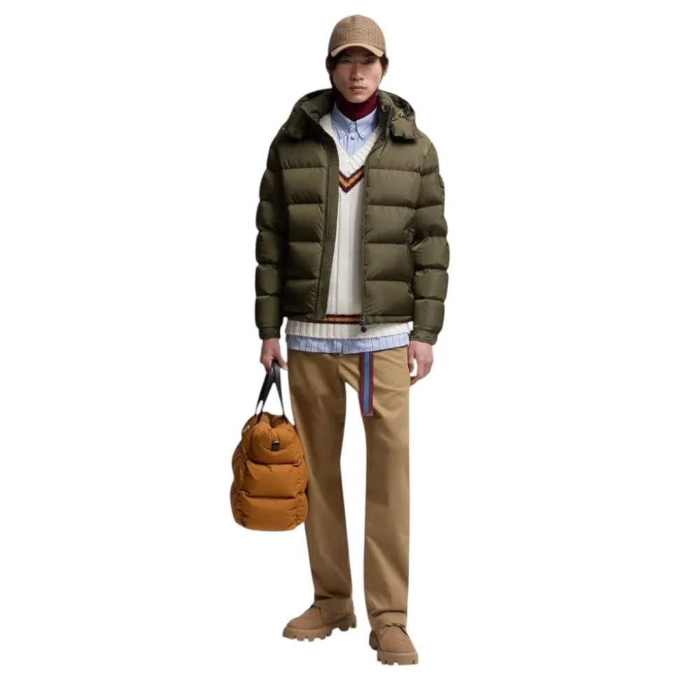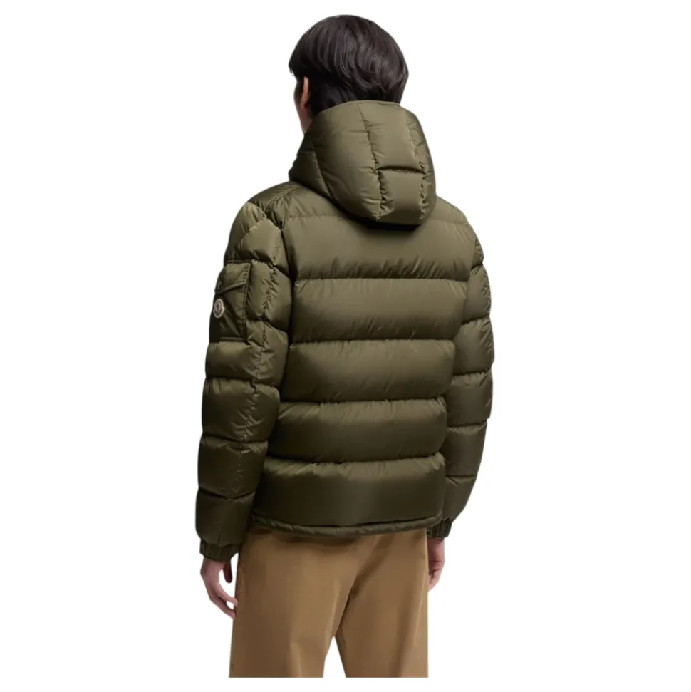 Moncler Maya Matte Kort Dunjakke fra Moncler kombinerer signatur boudin-quiltning med teknisk nylon for let, vejrbeskyttende isolering. Designet til urbane vintre, den tilbyder alsidig varme og en moderne, kort puffer-silhuet. Vigtige egenskaber: Grøn | Polyamid / Nylon | Vandafvisende finish | Højloftet dunisolering | Let varme | Slidstærkt nylonstof | Aftagelig og justerbar hætte | Lynlås- og trykknaplukning | Lynlåslommer i siden | Ærmelomme med trykknaplukning | Justerbar snøre i sømmen | Elastiske manchetter med trykknap | Boudin-quiltning | Kort puffer-silhuet | Signatur ærmelogo-patch | Boxy talje med fittede skuldre og bryst | Dobbelt-slider lynlås | Mål & pasform: Længde (krave til søm): 67 cm | Almindelig pasform | Fittede skuldre og bryst; boxy talje | Modellen er 186 cm høj og bærer størrelse 3 | Sammensætning & pleje: Ydermateriale: 100% polyamid/nylon | For: 100% polyamid/nylon | Hættefor: 100% polyamid/nylon | Vattering: 90% dun, 10% fjer | Maskinvask max 30°C (mild proces). Må ikke bleges. Må ikke tørretumbles. Stryg max 110°C uden damp. Må ikke renses. Professionel vådrens (mild). Tørres fladt i skyggen.