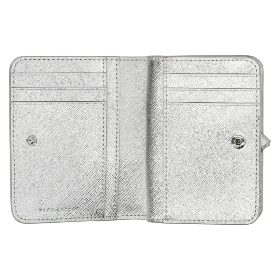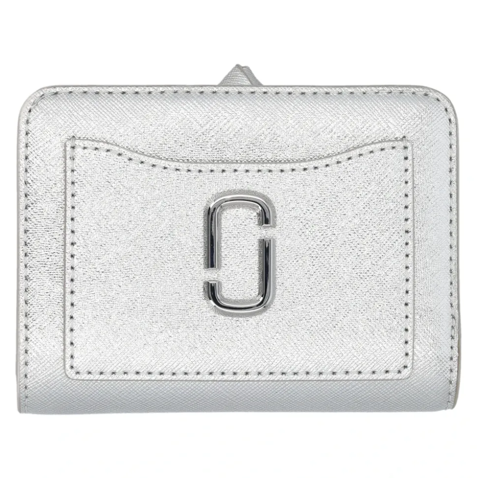 Hold dig organiseret med stil med Metallic Utility Snapshot Mini Compact Wallet fra Marc Jacobs. Denne elegante pung, inspireret af den ikoniske Snapshot crossbody-taske, er fremstillet af højkvalitets metallisk læder og har det karakteristiske J Marc hardware-segl. Produkt detaljer: Sølv | Grå | Spaltlæder fra kvæg | Bi-fold design | Seks kortlommer | Seddelrum | Trykknaplukning | Udvendig slip pocket | Signatur dobbelt-J logo | Sølvfarvet hardware | Sammensætning og pleje: 100% Læder
