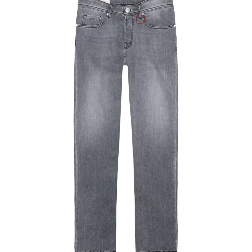 Tramarossa Michelangelo Jeans kombinerer italiensk håndværk med en slidt æstetik og kontrasterende sorte syninger. Aftagelige initialer på lommen og en glat rød læderlabel bagpå tilføjer karakteristiske, brugbare detaljer. Nøgleattributter: Grå | Bomuld, Elastomer | Aftagelige initialer på lommen | Lynlås- og knaplukning foran | Brugt effekt | Sorte kontrastsyninger | Rød læderlabel bagpå | Dimensioner og pasform: Straight fit | Sammensætning og pleje: Bomuld | Elastomer