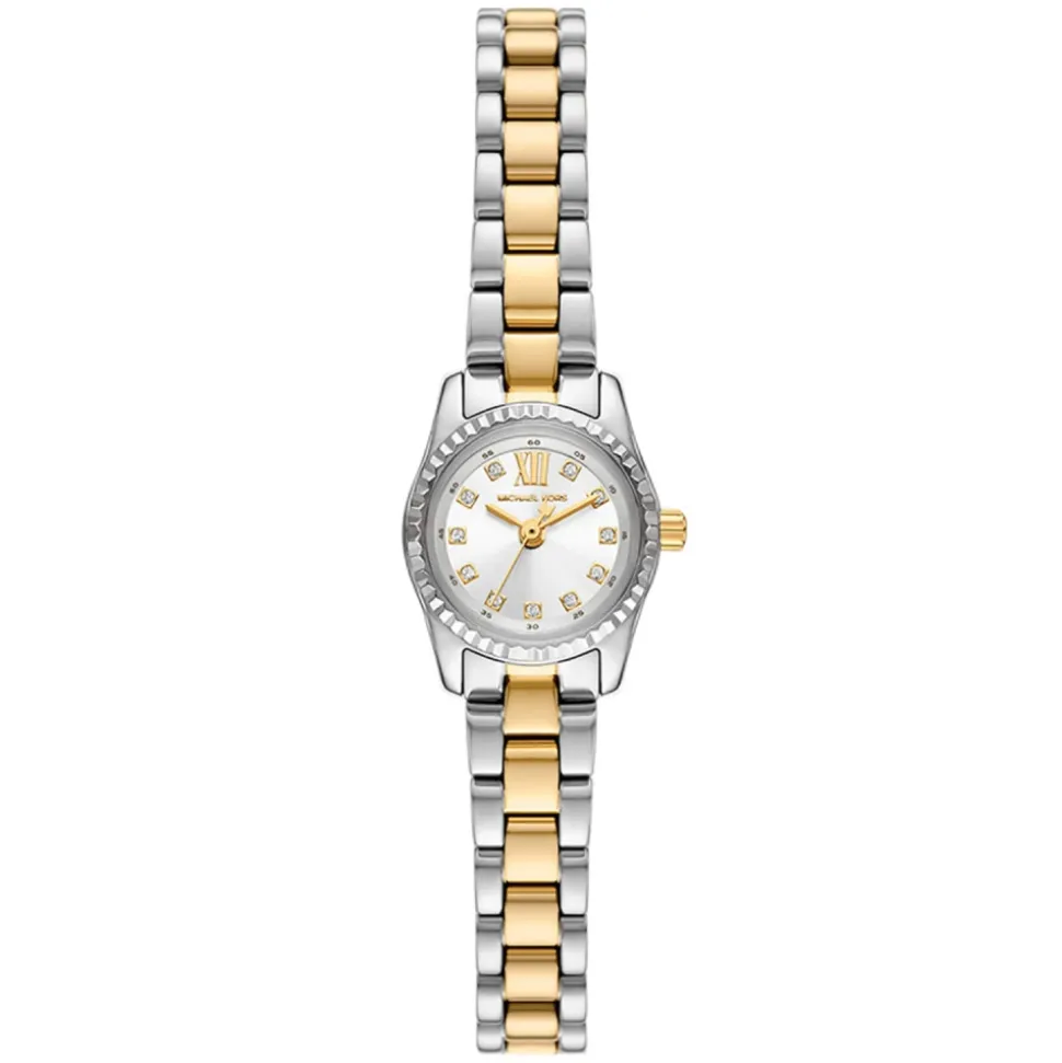 Michael Kors Micro Lexington Pavé Two-Tone Watch kombinerer et mikro-størrelse tofarvet urkasse i rustfrit stål med pavé krystalaccenter for et raffineret hverdagslook. Vigtige egenskaber: Sølv | Guld | Hvid | Rustfrit stål | Vandafvisende op til 5 ATM | Mineralkrystal | Quartz urværk med tre visere | Spændelukning | Justerbar lænkearmbånd | Rund urkasse | Skrå topring | Pavé krystalaccenter | Tofarvet armbåndsstrop | Dimensioner og pasform: Urkassediameter: 13 mm | Mikro-størrelse | Justerbar armbånd med aftagelige led | Sammensætning og pleje: Rustfrit stål | Aftør med en blød klud. Undgå kontakt med skrappe kemikalier. Overskrid ikke den angivne vandbestandighed.