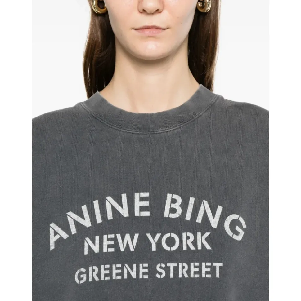 Anine Bing Miles New York Sweatshirt er en bomuldssweatshirt med rund hals og et signaturprint foran, designet til komfortabel hverdagsbrug og nem lagdeling. Nøgleattributter: Sort | Vasket sort | Bomuld | Elastiske manchetter | Rund hals | Lange ærmer | Print foran | Kant forneden | Dimensioner og pasform: International størrelse | Sammensætning og pleje: 100% bomuld