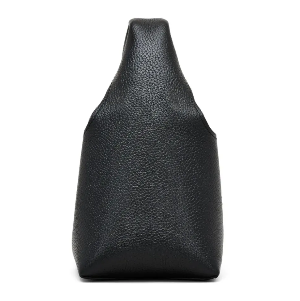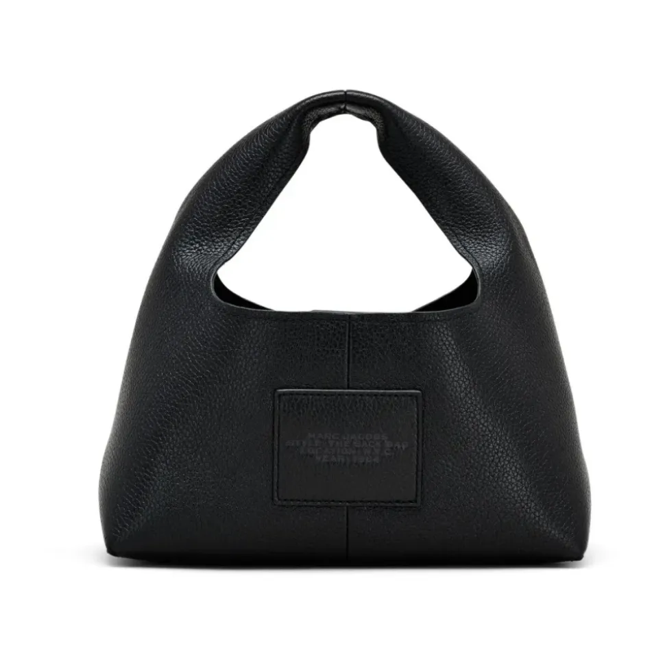 Forøg din stil med denne sorte Marc Jacobs ‘The Mini Sack’ håndtaske. Lavet af let fuldkornet læder, har den en tonal logo præget på forsiden og bagsiden. Tasken er sikret med en magnetisk snap lukning og inkluderer en intern lynlås lomme og slip lomme. Mål: Længde: 24 cm, Dybde: 13 cm, Højde: 14 cm, Håndtag: 12 cm.