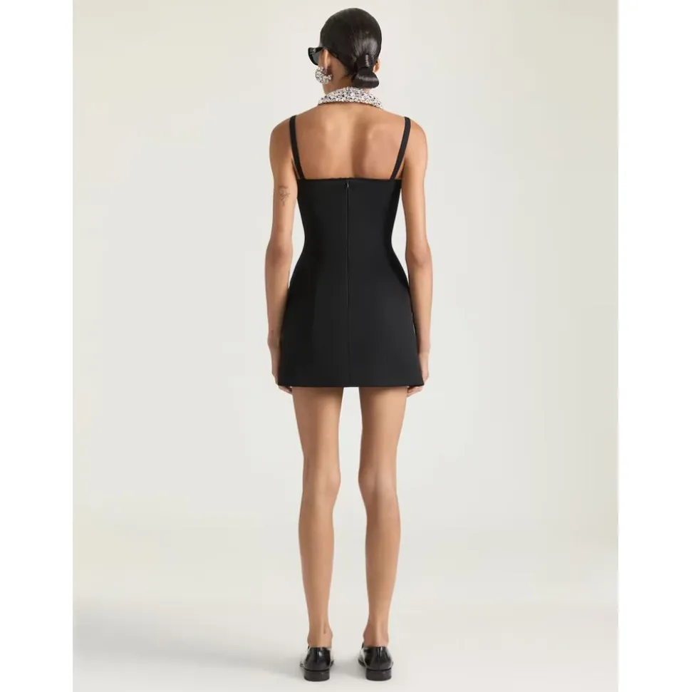 Givenchy Mini skræddersyet kjole i uld har en struktureret silhuet med et integreret korset, der giver en markeret talje. De skræddersyede detaljer gør den velegnet til elegante hverdagslooks og lejligheder, hvor man ønsker en kort kjole. Vigtige egenskaber: Sort | Noir | Uld | Usynlig lynlåslukning bagpå | Knaplukning foran | To klaplommer foran | Integreret korset | Struktureret firkantet halsudskæring med revers | Markeret talje | Mini længde | Klaplommer foran | Mål og pasform: Modellen måler 177 cm og bærer størrelse 36. | Materiale og pleje: 100% uld | Sekundært materiale: 70% silke, 30% polyester | Foring: 100% polyester | Må ikke vaskes. Stryg ved maksimal temperatur på strygesålen (110°C) uden damp. Må ikke tørretumbles. Må ikke bleges. Renses med carbonhydrid.