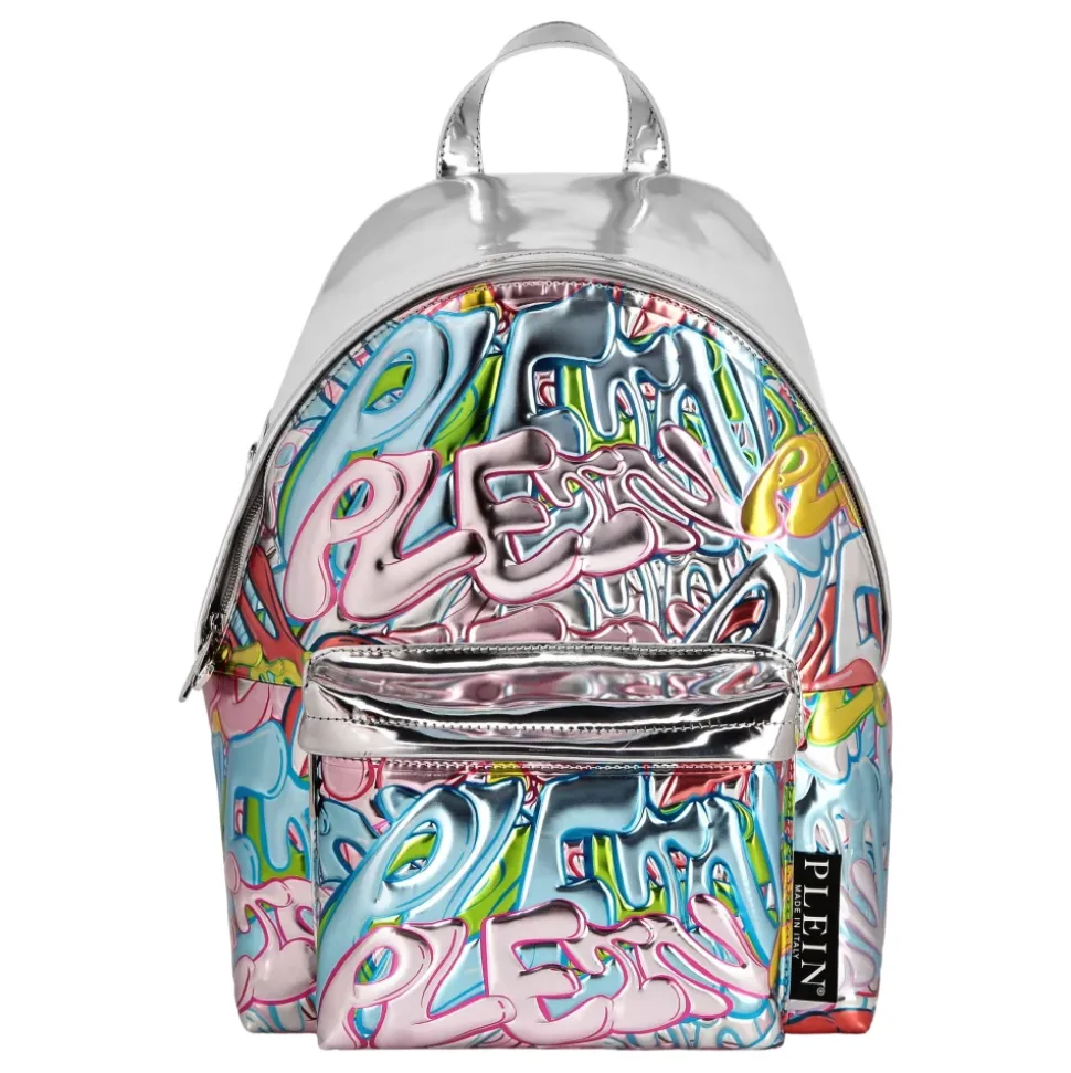 Philipp Plein Mirror Leather Backpack Bombing Graffiti giver et specchio-inspireret, præget graffitilook til en praktisk rygsæk. Dens mest iøjnefaldende funktion er et farverigt 3D-præget mønster på en spejloverflade, kombineret med polstrede stropper med logo og flere lommer til hverdagsbrug og særlige lejligheder. Vigtige egenskaber: Multicolor | Polyurethan | Polstrede og justerbare skulderstropper i logo-nylon | Lynlåslomme udvendigt | Lynlåslukning | Indvendig lomme | Stoflining | 3D-præget graffitilignende mønster | Specchio-materialefinish | Sammensætning & pleje: Ydre: 100% polyurethan | For: 100% bomuld | Fyld: 50% polyurethan, 50% polyamid