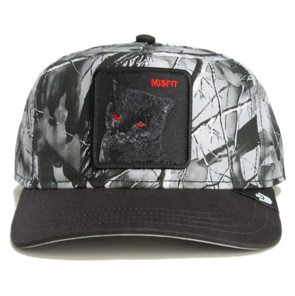 Goorin Bros Misfit Camo 5 Panels Cap kombinerer en klassisk 5-panel silhuet med et camo mønster og et sort katte-patch, ideel til afslappet hverdagsbrug. Vigtige egenskaber: Grå | Gris | 5-panel konstruktion | Camo print | Sort katte-patch