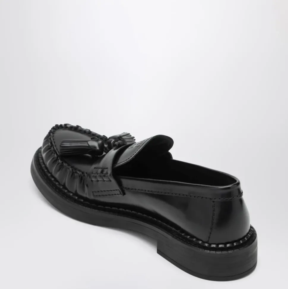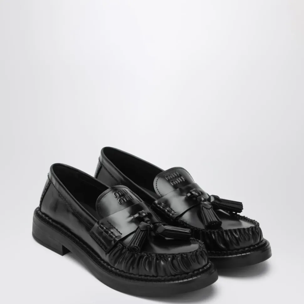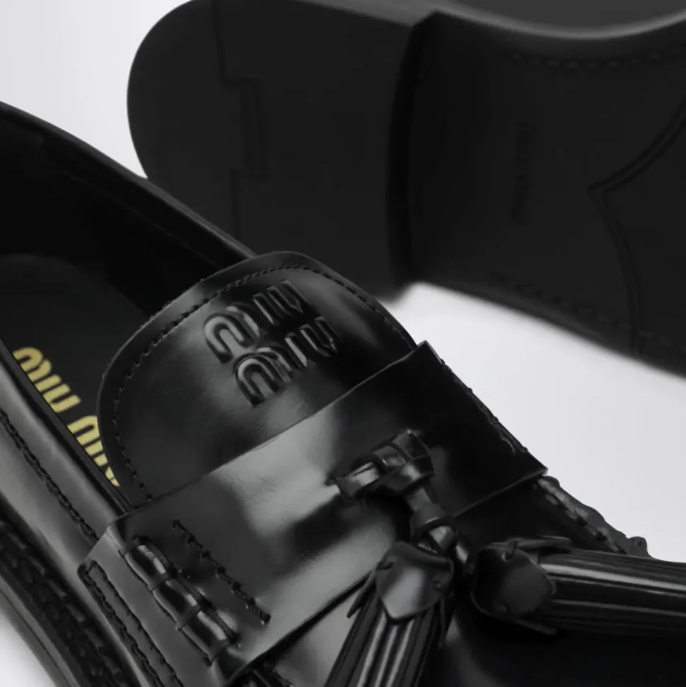 Miu Miu Mocassino er en loafer-lignende flad sko fra Miu Miu i en sort finish. Den kombinerer klassiske mokkasin-inspirerede detaljer med en simpel silhuet til hverdagsbrug. Vigtige egenskaber: Sort | Mokkasin-inspirerede detaljer | Loafer silhuet