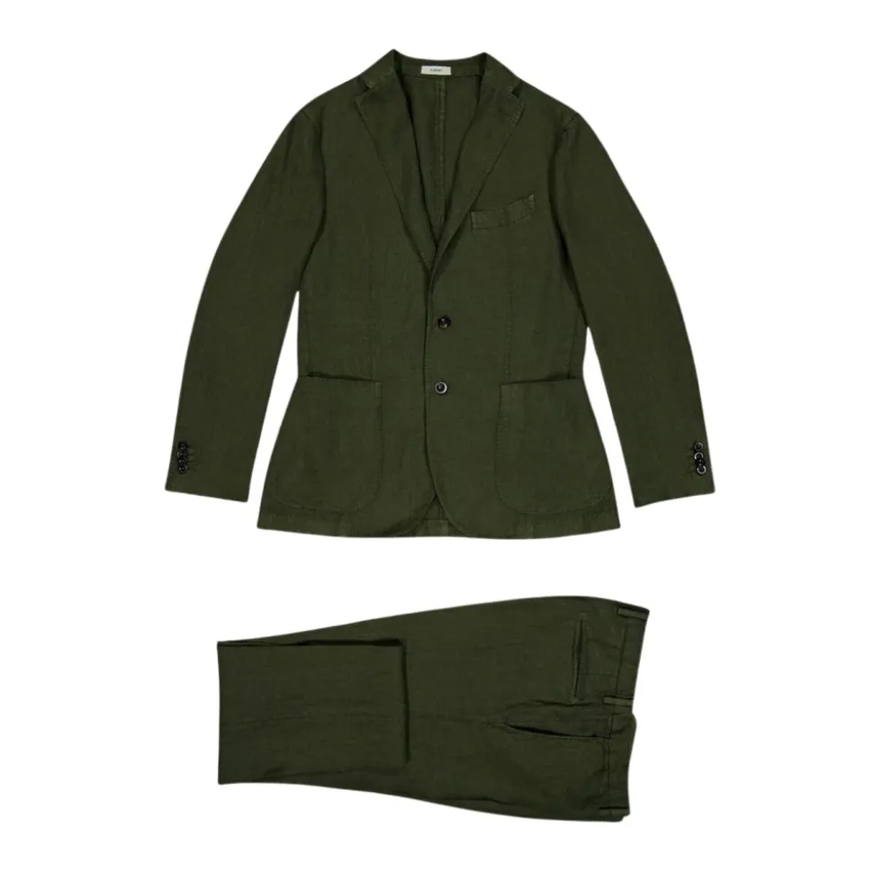 Forøg din stil med dette Boglioli olivengrønne jakkesæt lavet af premium hør. Den klassiske jakke med hakrevers og matchende bukser giver et skarpt look til enhver sofistikeret begivenhed. Plejeinstruktioner: Rens.