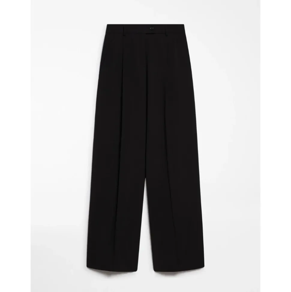 Sportmax Vela bukser har et chic og moderne design inspireret af klassisk herretøj – lavet af uld, disse brede og oversized bukser har fuldlængde pressefolder, en knaplukning og sidelommer samt baglommer. – Uldbukser – Oversized pasform – Pressefolder – Knaplukning – Sidelommer og baglommer – Produkt svarer til italienske størrelser.