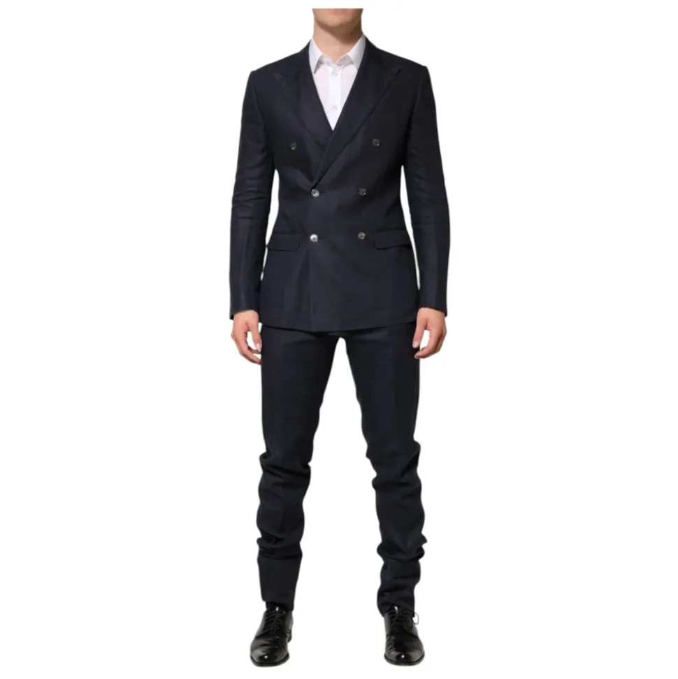 Forkæl din formelle stil med dette fantastiske Dolce & Gabbana dobbeltradede jakkesæt i mørkeblå. Fremstillet i Italien af 100% hør, har det slim-fit jakkesæt en peak reversjakke med knapmanchetter og et par bukser med 3-vejs lynlåslukning. Luksuriøst foret med 80% silke og 20% viskose udstråler dette eksklusive sæt høj håndværksmæssig kvalitet og sofistikering.