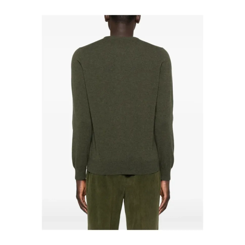 Opgrader din garderobe med denne mørkegrønne cashmere crew neck sweater fra La Fileria til mænd, der har lange ærmer og ribstrikkede manchetter og kant.
