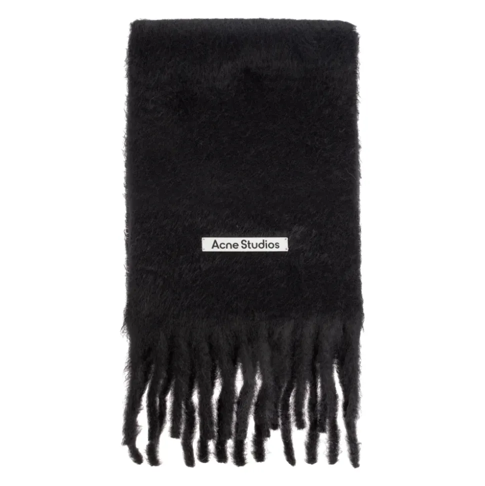 Acne Studios’ Mohair Logo Scarf er et langt, alsidigt vintertilbehør, der kombinerer raffinerede detaljer med hyggelig varme. Den bløde mohairtekstur og læderlogo-tag tilføjer diskret designerkarakter til hverdagens overtøj. Vigtige egenskaber: Sort | Mohair | Blød og plysset | Varmt isolerende lag | One size | Let at vikle | Alsidig styling | Langstrakt rektangulær form | Lange, tætte frynser | Synlig hårfinish | Mønsterfri tekstur | Sort og hvidt Acne Studios logo-tag | Mål og pasform: Højde: 23 cm | Bredde: 220 cm | One size | Sammensætning og pleje: 91% Mohair | 9% Nylon | Patch: 100% Kalvelæder