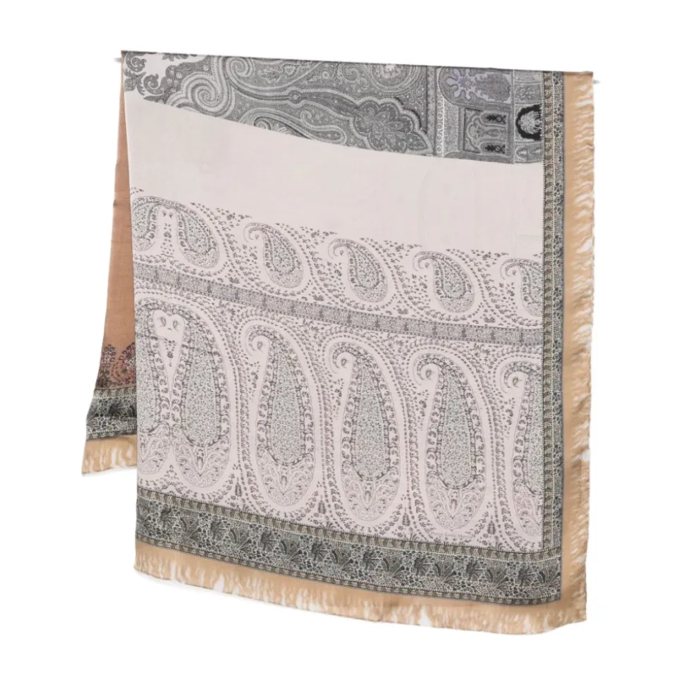 Pierre-Louis Mascia Molare Scarf er et generøst stort tørklæde på 135 x 135 cm fra Pierre-Louis Mascia, defineret af et paisleyprint og frynser. Designet til alsidig drapering, det tilføjer mønster og tekstur til frakker, kjoler eller minimalistiske outfits. Vigtigste egenskaber: Grøn | Kaki | Brun | Multicolor | Paisleyprint | Frynser | Firkantet form | Dimensioner og pasform: 135 x 135 cm