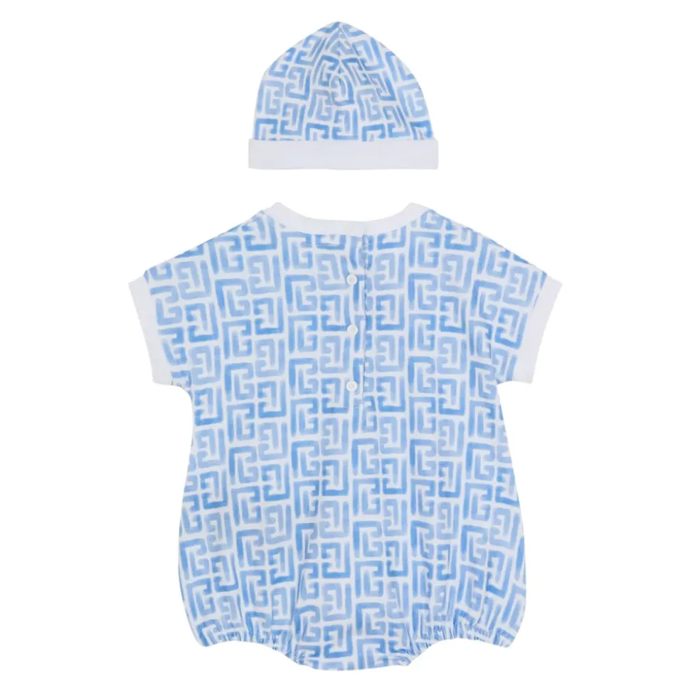 Balmain Monogram 3-delt sæt tilbyder en koordineret body, hue og savlesmæk, der er skabt til hverdagsbrug, med maisonets signaturmonogram og en trykknaplukning for nem påklædning. Vigtige egenskaber: Blå | Bomuld | Trykknaplukning | Matchende body, hue og savlesmæk | Rund halsudskæring | Monogramprint | Sammensætning & pleje: 100% bomuld | Maskinvask ved 30°C