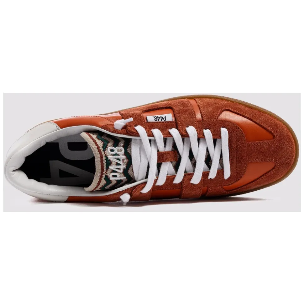 P448 Monza Waves sneakers kombinerer rødt læder og ruskind over det hele med en kontrasterende hvid hælkappe for et dristigt hverdagslook. De er bygget til komfort og har en memory-foam indersål og den karakteristiske P448 gummisål. Nøgleattributter: Rød | Hvid | Læder og ruskind | P448 gummisål | Frottéforing | Hvide bomuldssnørebånd | Ekstra par kobberfarvede bomuldssnørebånd inkluderet | Memory-foam indersål | Overdel i rødt læder og ruskind over det hele | Kontrasterende hvid læderhælkappe | Strikket, tekstureret pløs | Gummisål | Mål og pasform: Normal i størrelsen | Sammensætning og pleje: Læder | Ruskind | Bomuld | Gummi | Frotté | Memory foam | Pletrens. Behandl læderet med en beskyttende læderspray efter behov; tør af med en let fugtig klud. Følg alle varemærkets plejeinstruktioner.