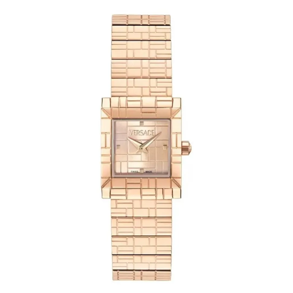 Versace Mosaic Watch kombinerer en firkantet mosaikurskive med et rosaguldtonet rustfrit stålarmbånd, hvilket giver et raffineret dress watch-look. Dens kompakte 22 mm urkasse og safirkrystal gør den velegnet til et poleret hverdagslook. Vigtige egenskaber: Rosaguld | Rustfrit stål | Vandafvisende til 30 m (3 ATM) | Ridsfast safirkrystal | Quartz urværk | Metalarmbånd | Foldelås med trykknapudløsning | Firkantet mosaikurskive med Versace-logo ved klokken 12 | Firkantet urkasse | Rosaguldtonet finish | Mål og pasform: Urkassens bredde: ca. 22 mm | Sammensætning og pleje: Rustfrit stål | Aftør med en blød klud; undgå kontakt med kemikalier og langvarig udsættelse for vand; få batteri og tætninger serviceret af en autoriseret tekniker.