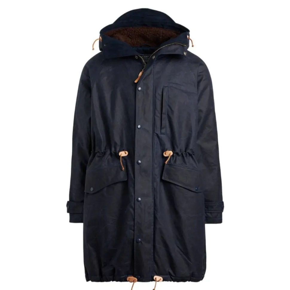 Hold dig varm og stilfuld i denne Manifattura Ceccarelli Mountain Parka i marineblå med en brun foring. Lavet af vandafvisende voksbehandlet bomuld, denne parka har uldforing for ekstra varme.
