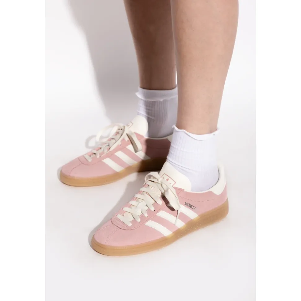 ‘MUENCHEN W’ SNEAKERS udstråler elegance skjult i en sporty form. Den klassiske lavprofil sneaker-silhuet harmonerer smukt med en afrundet, subtilt spids tå, der understreger fodtøjets tidløse karakter. Overdelen er lavet af luksuriøst ruskind, der fanger opmærksomheden med sin forfinede tekstur. Omhyggeligt udvalgte detaljer—striberne, tungen og hælen i i hvide og cremefarvede toner—skaber en tydelig modvægt til den pastelrosa farve. På siden af overdelen hylder en sølvfarvet