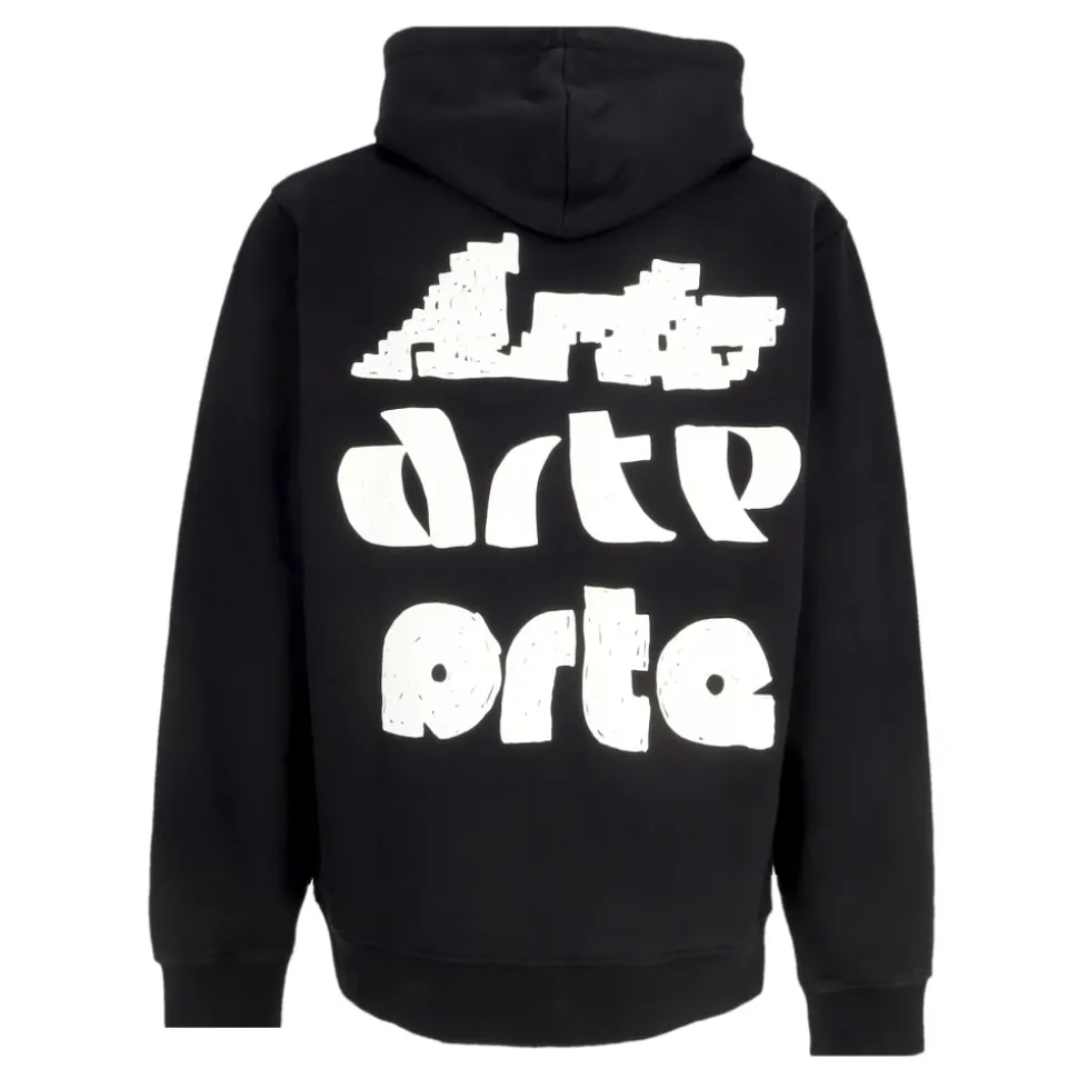 Arte Antwerp Multi Logo Print Hoodie er en let hættetrøje med et markant multi-logo-print til hverdagsbrug. Den kombinerer en afslappet silhuet med praktiske detaljer som en justerbar hætte og kængurulomme. Nøgleattributter: Sort | Bomuld | Justerbar hætte med snøre | Kængurulomme foran | Multi-logo-print | Arte-logo påført på ryggen | Dimensioner og pasform: Blød pasform | Afslappet pasform | Sammensætning og pleje: 100% bomuld | Hånd-/maskinvaskbar (læs etiketten)