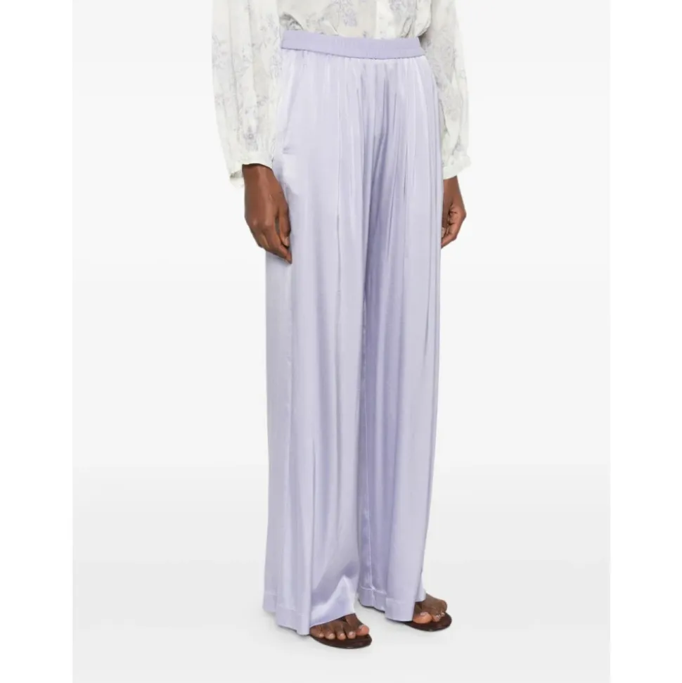 Forte Forte My Pants er silkebløde satinbukser med vide ben i lilla, designet til at give et flydende fald og en afslappet, men alligevel skræddersyet silhuet, der er ideel til polerede hverdagslooks. Nøgleattributter: Lilla | Lilac | Silkesatin | Strækstof | Flydende fald | Elastisk taljebånd | Vide ben | Presset frontfold | Syet søm | Dimensioner og pasform: Bred pasform