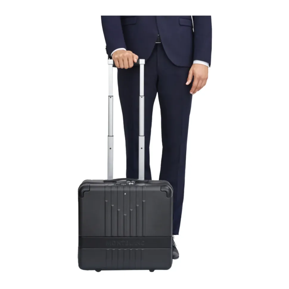 Montblanc MY4810 Cabin Trolley med frontlomme er en kompakt business-rejsetrolley, der er designet til organiseret og sikker rejse. Den kombinerer en lynlåslomme foran og dobbelte indvendige rum med en låselukning for nem adgang og pålidelig beskyttelse. Nøgleattributter: Sort | Polykarbonat | Letvægts polykarbonatskal | Holdbar konstruktion | Lynlåslomme foran | Dobbelt indvendigt rum med lynlås | TSA-låselukning | Fire støjsvage hjul | Teleskophåndtag i flere længder | Læderlogobånd | Læderkant | Jacquard-foring med sekskantet motiv | Visitkortholder | Dimensioner og pasform: 44 x 40 x 22 cm | 44 x 40 x 22 cm | Kapacitet: 34,6 l | Sammensætning og pleje: Polykarbonat | Læder
