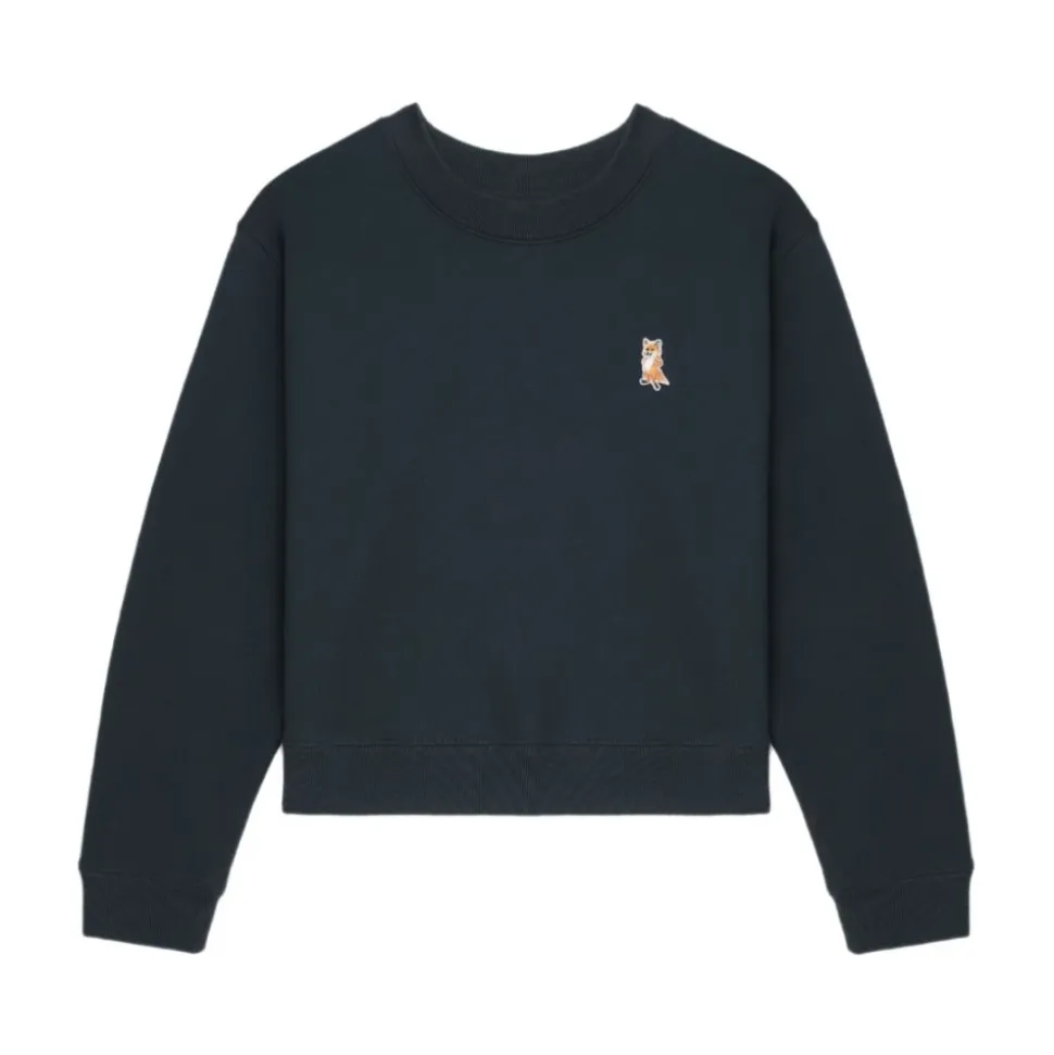 Forkæl dig selv med denne Maison Kitsuné navy crew neck sweatshirt med rævebroderi på brystet. Lavet af bomuld, er denne sweatshirt med kort længde et tidløst stykke til den moderne kvinde.