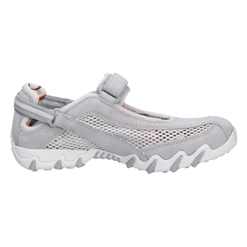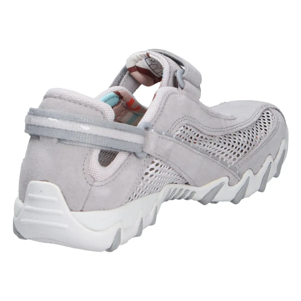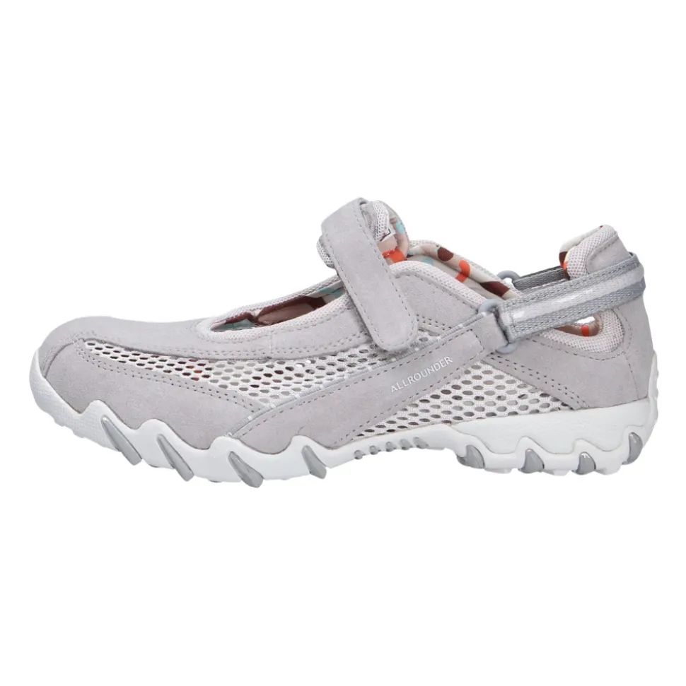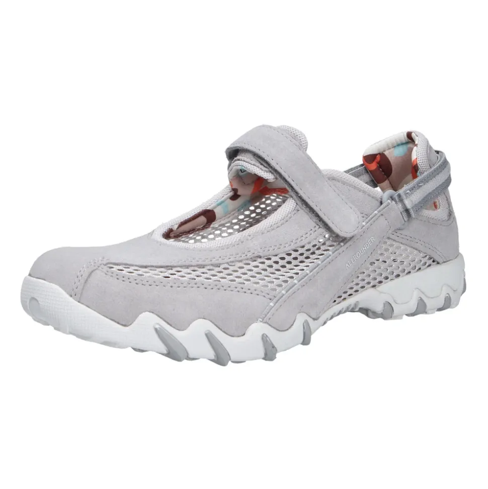 Allrounder Niro er en sporty hverdagssandal fra Allrounder by Mephisto, designet til let at tage af og på og komfort hele dagen. Overdelen i blødt velourlæder og den justerbare velcrorem giver en åndbar og sikker pasform til daglig brug. Nøgleegenskaber: Grå | Grau | Velourlæder | Åndbart for | Stødabsorberende sål | Skridsikker, slidstærk gummiydersål | Justerbar velcrorem | Aftagelig polstret tekstilindersål | Elastisk tekstilfor for øget komfort | Rund tå | Sporty slip-on silhuet | Flad hæl | Mål & pasform: Hælhøjde: 1,5 cm | Regular fit | Bredde G (komfortbredde) | Skostørrelsen er normal | Sammensætning & pleje: Velourlæder (Veloursleder) | Tekstilfor | Aftagelig tekstilindersål | Gummisål (Caoutchouc Lite)
