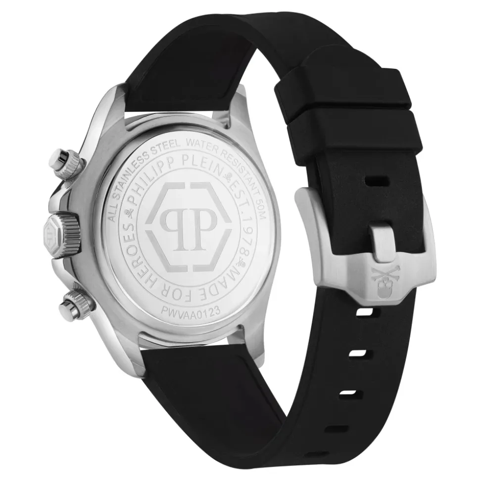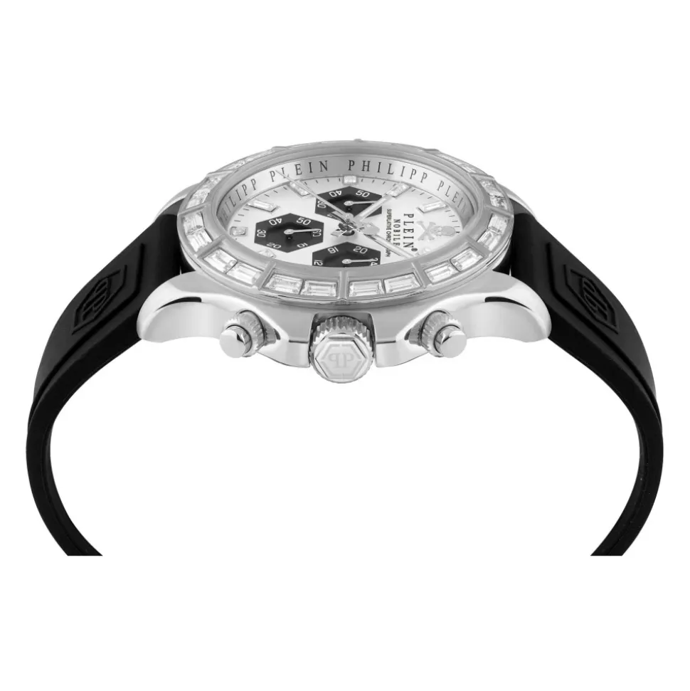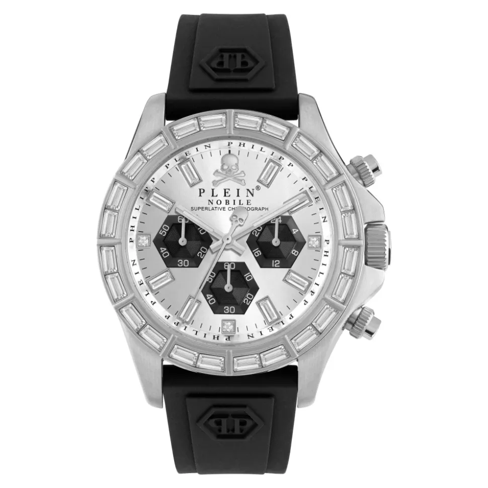 Philipp Plein Nobile Racing Superlative kombinerer motorsport-inspireret design med en krystalbesat urskive og en slidstærk silikonerem, hvilket giver et stilfuldt hverdagsur med præcis kvartstidtagning. Nøgleattributter: Grå | Sølv | Sort | Rustfrit stål | Vandafvisende op til 5 ATM | Quartz urværk | Slidstærk silikonerem for komfort | Krystalbesat urskive | Motorsport-inspireret design | Sølvfarvet urkasse i rustfrit stål | Dimensioner & pasform: Urkassediameter: 43 mm | Sammensætning & pleje: Rustfrit stål | Silikone | Krystal