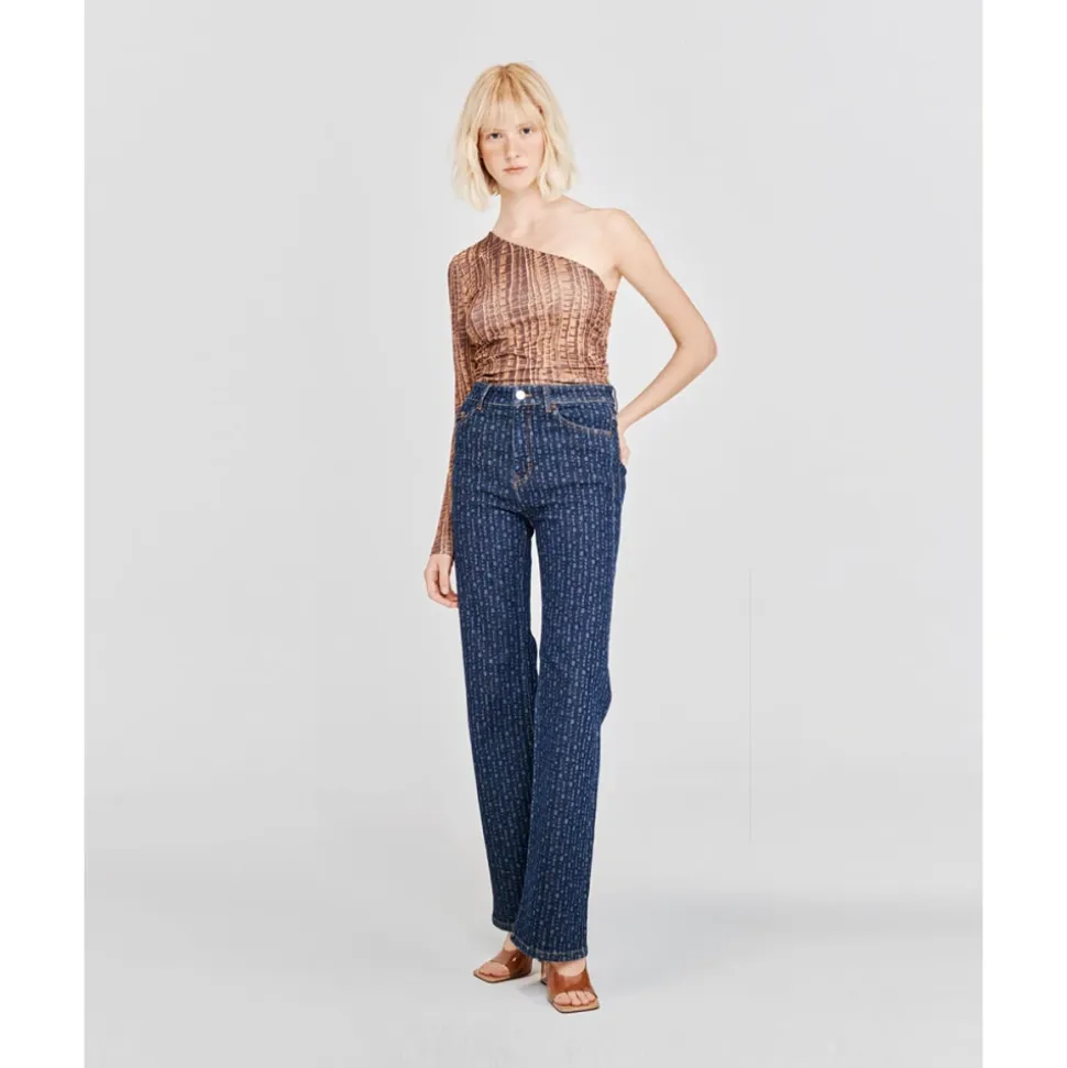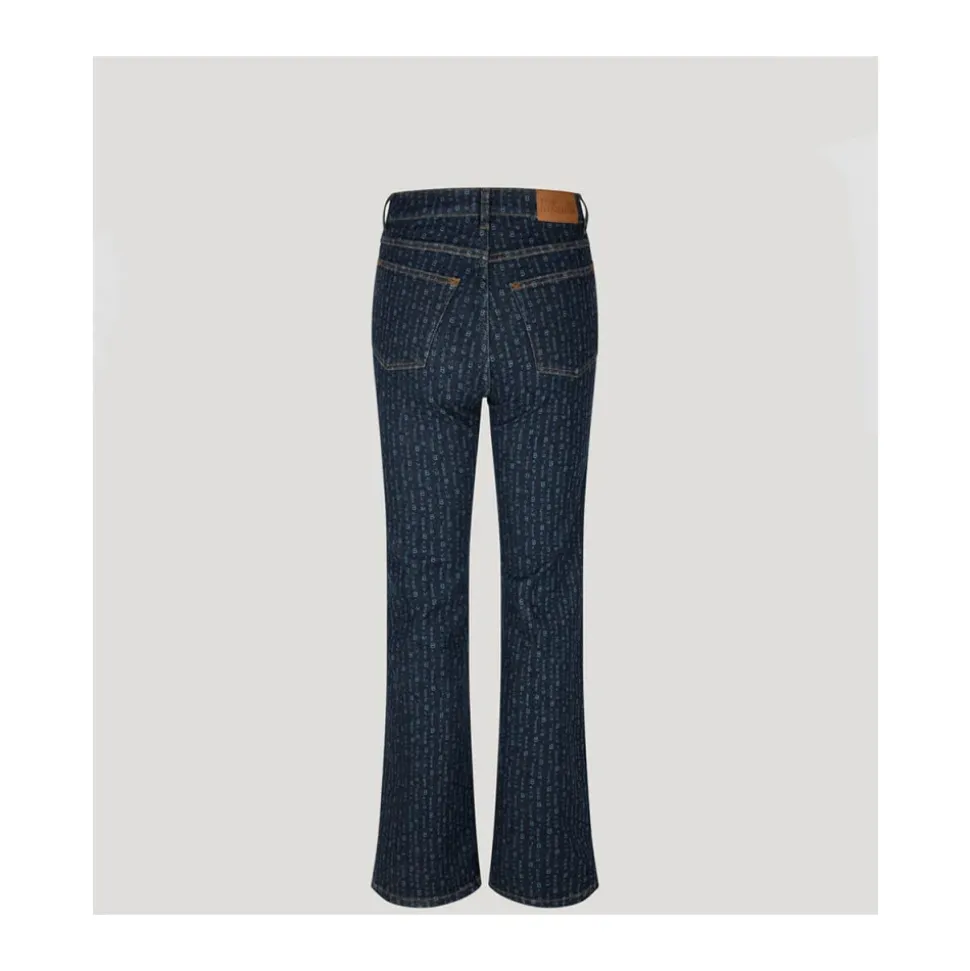 Baum und Pferdgarten Novelle Flared Jeans kombinerer en højtaljet silhuet med lange, dramatisk flared ben. Designet til at sidde tæt ved hofter og lår, de har et subtilt småbogstavsprint og femlomme-styling for et løftet hverdagslook. Nøgleattributter: Blå | Code | Femlomme-styling | Lange flared ben | Subtilt småbogstavsprint | Dimensioner og pasform: Høj talje | Fitted ved hofter og lår | Lange, flared ben | Modellen er 175 cm høj og bærer størrelse 36/S