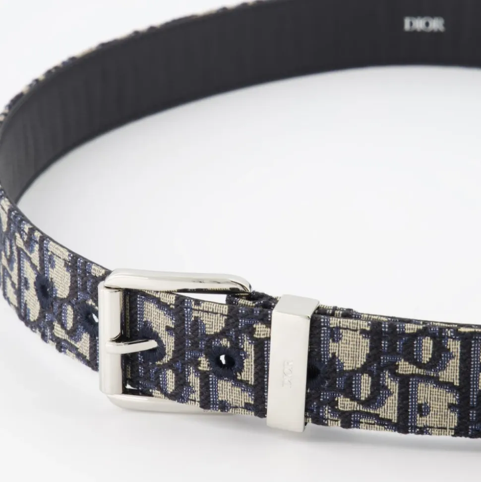 Dior Oblique Jacquard Bæltet kombinerer husets signatur Oblique jacquard med kornet kalveskind for et raffineret hverdagsaccessories. Bredden på 35 mm og spændet i messing med palladiumfinish gør det til et alsidigt valg til både afslappede og skræddersyede looks. Vigtige egenskaber: Sort | Noir | Jacquard | Justerbar længde | Stiftspænde | Spænde i messing med palladiumfinish | Dior signatur indgraveret på bæltestrop | Præget Dior signatur på indersiden | 35 mm bredde | Dimensioner og pasform: Bredde: 35 mm / 3,5 cm | Spændets dimensioner: 4,5 x 4,5 cm | Justerbar længde | Sammensætning og pleje: 75% bomuld, 15% polyester, 10% akryl | For: 100% kalveskind