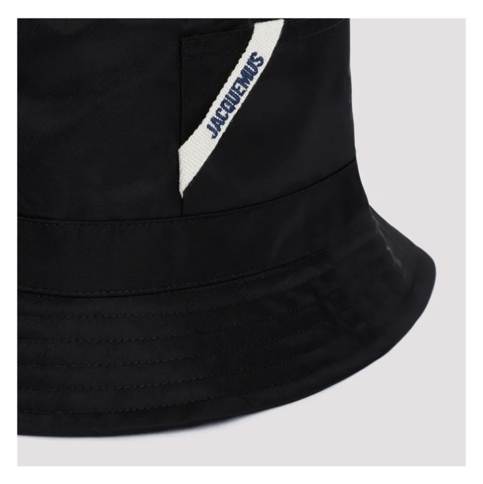 Jacquemus Ovalie Bucket Hat kombinerer en elegant nylon silhuet med praktiske detaljer. Designet fremhæver en sidelappet lomme og et skråt logo-tag for en moderne, fashionabel finish. Vigtige egenskaber: Sort | Nylon | Sidelappet lomme | Skråt logo-tag | Topstitched detaljer | Runde og firkantede forsølvede øjer | Sammensætning & pleje: 90% Nylon | 10% Akryl