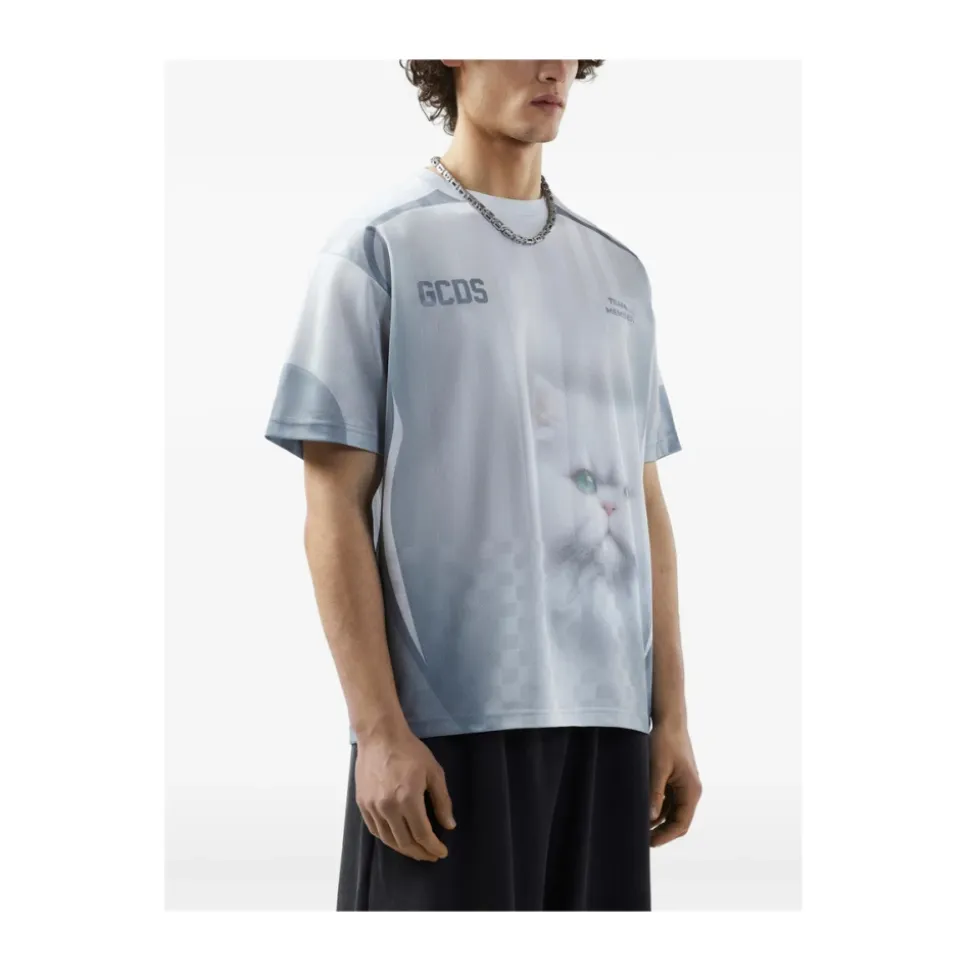 GCDS Oversize Kitten T-shirt kombinerer en oversized silhuet med et all-over killingeprint, hvilket skaber et iøjnefaldende streetwear-element. Den ribbede crew neck og korte ærmer holder looket casual og behageligt at have på. Vigtigste egenskaber: Hvid | Polyester | Ribbet crew neck | Korte ærmer | All-over digitalt killingeprint | Trykt mikro-GCDS-logo på brystet | Mål og pasform: Oversized pasform | Sammensætning og pleje: 100% Polyester