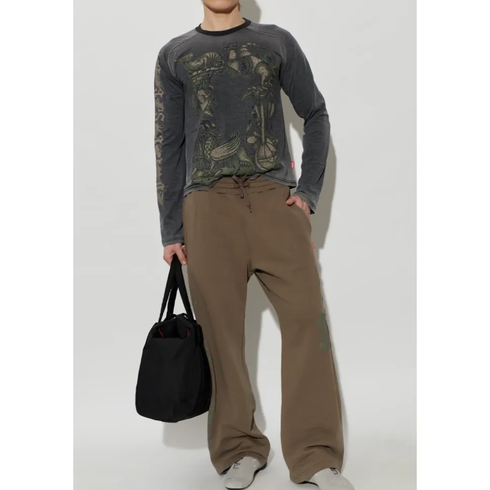 Diesel P-GRO Sweatpants kombinerer raffineret komfort og hverdagsstil. Den afslappede, lige pasform og de brede ben skaber en let silhuet, mens en håndlavet-lignende grøn grafik tilføjer et distinkt touch på brun. Nøgleattributter: Brun | Bomuld | Let silhuet | Behagelig bærekomfort | Justerbar linning | Sidelommer | Baglomme med lukning | Håndlavet-lignende grønt grafisk tryk | Mat tekstur | Rødt DIESEL-logomærke | Dimensioner & pasform: Modelhøjde: 185 cm | Model bryst: 92 cm | Model talje: 74 cm | Model hofter: 91 cm | Modellen er iført størrelse: L | Afslappet, lige pasform | Bredt ben