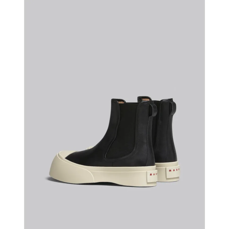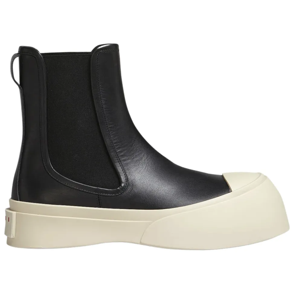 Pablo Chelsea Støvlen fra Marni tilbyder et elegant og moderne design med sin sorte nappa læderkonstruktion og chunky platformssål, perfekt til at tilføje et strejf af sofistikering til ethvert outfit. Produkt detaljer: Sort | Nappa Læder | Elastiske sider | Chunky platformssål | Marni logo på bagsiden | Dimensioner og pasform: Normal pasform | Sammensætning og pleje: Overdel: 100% Nappa Læder | Sål: Gummi | Renses med en blød klud