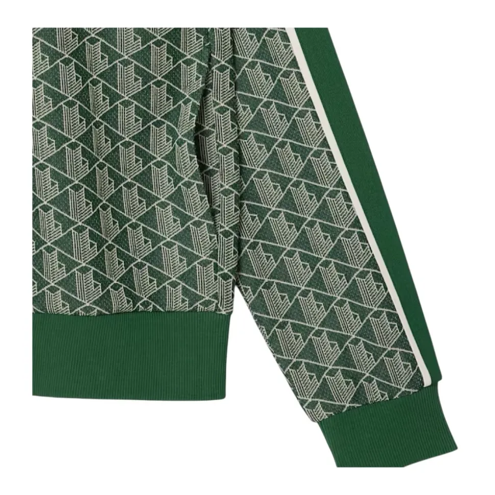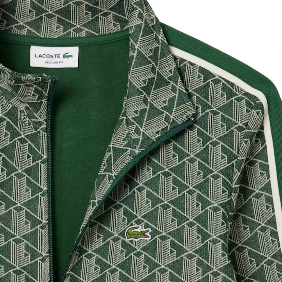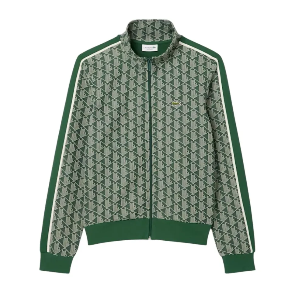 Lacoste Paris Zip-Up Jacquard Track Jacket kombinerer en førsteklasses jacquard-monogramstrik med sporty detaljer til træning og hverdagsbrug. Dens silhuet med lynlås og markante kontraststriber gør den til et alsidigt lag til aktive og afslappede looks. Vigtige egenskaber: Grøn | Verde | Bomuld | Polyester | Lynlåslukning | To sidelommer med kant | Jacquard-monogramstrik | Markante kontraststriber på ærmerne | Broderet krokodille på brystet | Ribkanter | Dimensioner & pasform: Almindelig, let figursyet pasform | Lidt lille i størrelsen; overvej at gå en størrelse op | Sammensætning & pleje: Hovedstof: Polyester 58% / Bomuld 38% / Polyamid 4% | Ribkant: Bomuld 98% / Elastan 2% | Lomme foring: Bomuld 100% | Maskinvask skånsom 30°C; må ikke bleges; må ikke tørretumbles; stryges ved lav varme (maks. 110°C); må ikke renses; hænges til tørre.