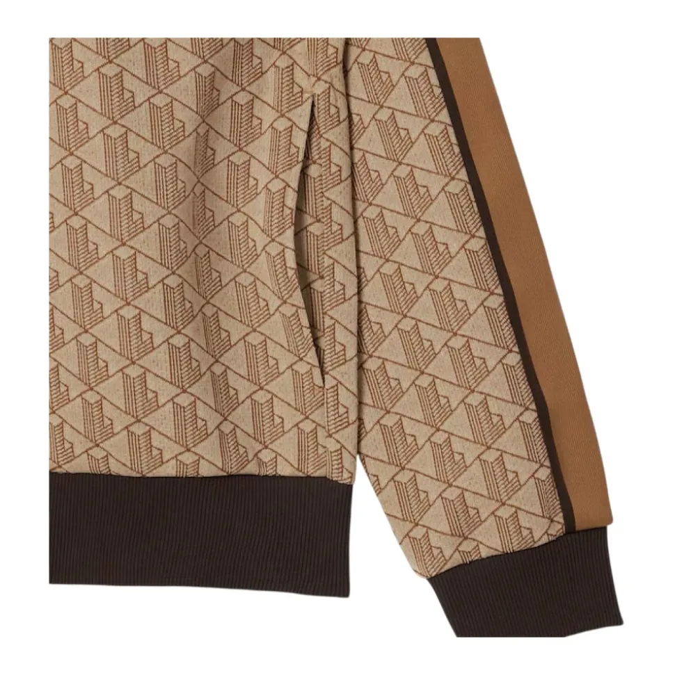 Lacoste Paris Zip-Up Jacquard Track Jacket kombinerer en monogram jacquardstrik med en lynlås silhuet for sporty hverdagsbrug. Den skiller sig ud med sin teksturerede strik og markante kontraststriber på ærmerne. Nøgleegenskaber: Beige | Bomuld og polyester | Slidstærk jacquardstrik | Fuld lynlås foran | To paspolerede sidelommer | Monogram jacquardmønster | Kontraststriber på ærmerne | Broderet krokodille på brystet | Stand-up krave | Ribstrikkede manchetter og søm | Mål og pasform: Almindelig pasform, let figursyet | Lille i størrelsen – overvej at gå en størrelse op | Sammensætning og pleje: Hovedstof: 58% polyester, 38% bomuld, 4% polyamid | Lomme foring: 100% bomuld | Ribkant: 98% bomuld, 2% elastan | Maskinvask skånsom 30°C. Må ikke bleges. Må ikke tørretumbles. Stryg ved max 110°C. Må ikke renses. Hængetørres.