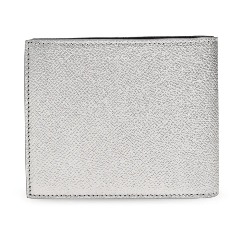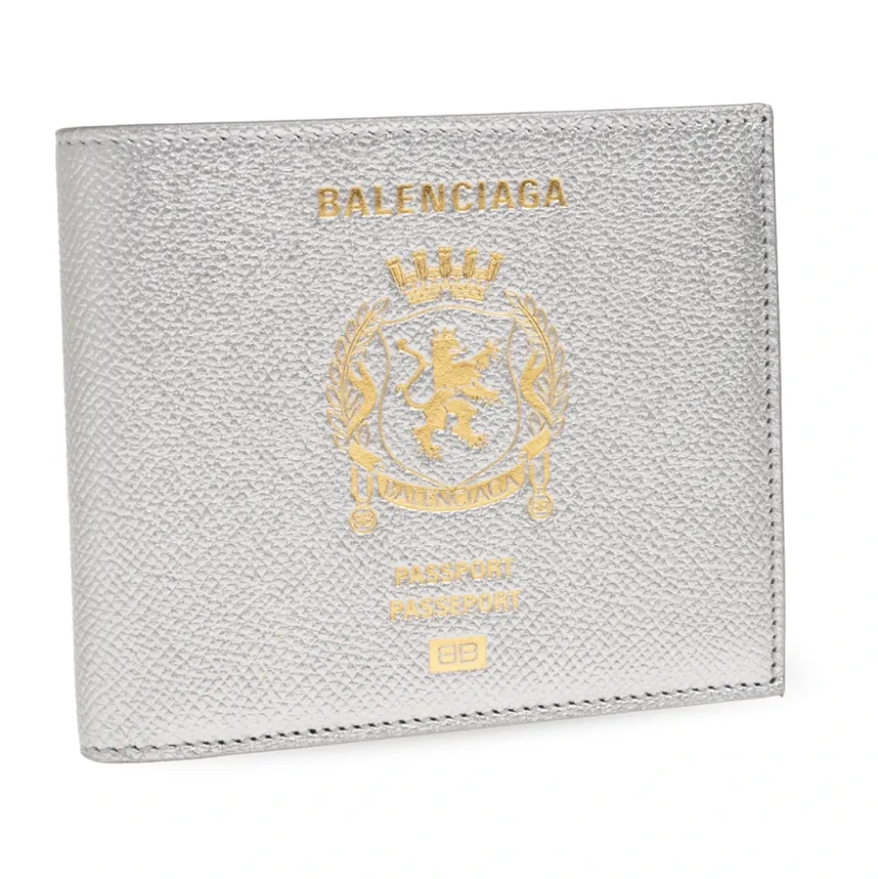 Balenciaga Passport Square Folded Wallet kombinerer en metalliseret sølvfarvet kalveskindsfinish med en kompakt firkantet silhuet for organiseret hverdagsbrug. Nøgleattributter: Sølv | Kalveskindslæder | Holdbar konstruktion | Metallisk finish | 8 kortlommer | 2 seddellommer | 2 kvitteringsrum | Firkantet silhuet | Debosseret Balenciaga-logo foran | Metalliseret semi-mat tekstureret finish | Dimensioner og pasform: Længde: 11,5 cm | Højde: 9,5 cm | Bredde: 2 cm | Sammensætning og pleje: Kalveskindslæder | Fjern forsigtigt rester med en blød, tør, naturligfarvet klud. Hvis der kommer kontakt med væsker, dup straks og lad det tørre i frisk luft. Brug ikke kemikalier eller maskinvask; konsulter en rengøringsspecialist for pletter. Opbevar i sin pose og undgå langvarig udsættelse for varme, sollys eller kontakt med kontrasterende farver.