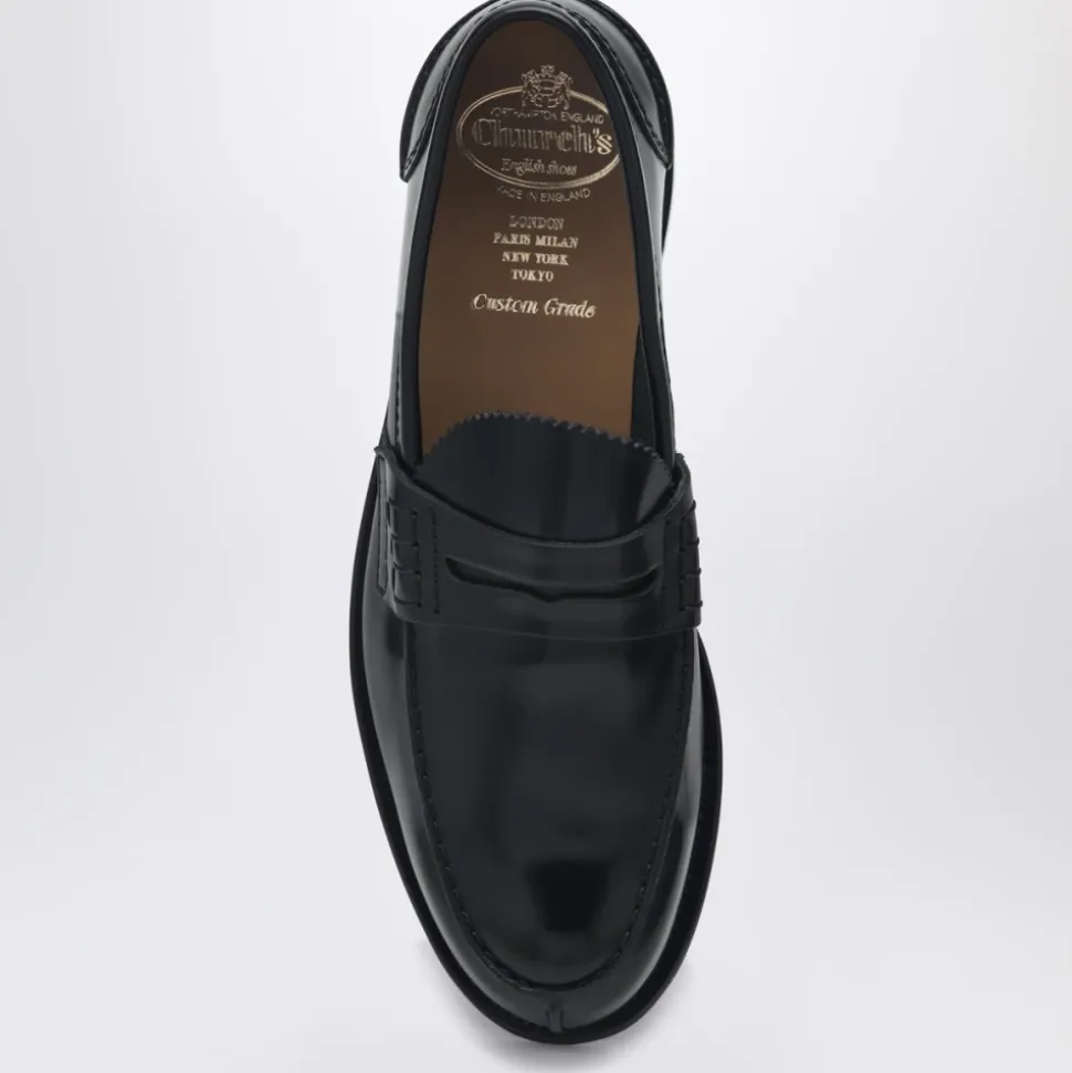 Church’s Pembrey Mocassino kombinerer klassisk split-toe moccasin-styling med en overdel i poleret kalvelæder og en lav, stablet hæl, hvilket gør den til et raffineret valg til smart-casual beklædning. Vigtige egenskaber: Sort | Kalvelæder | Lædersål med skridsikker gummiindsats | Goodyear konstruktion | Slip-on design | Foldet toplinje for øget komfort | Håndsyede detaljer | Split-toe moccasin | Syede sidedetaljer og takket pløs | Hælkappe | Designer ID: EDB0039LGF0AAB | Dimensioner & pasform: Hæl: 2,5 cm | Pasform: G | Læst/form: 126 | Sammensætning & pleje: Overdel: 100% kalvelæder | Foring: 100% læder | Sål: læder og gummi