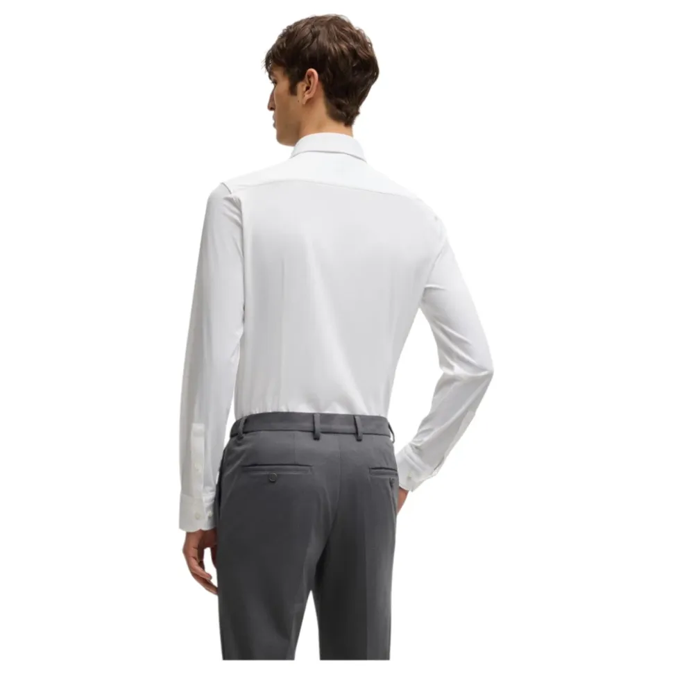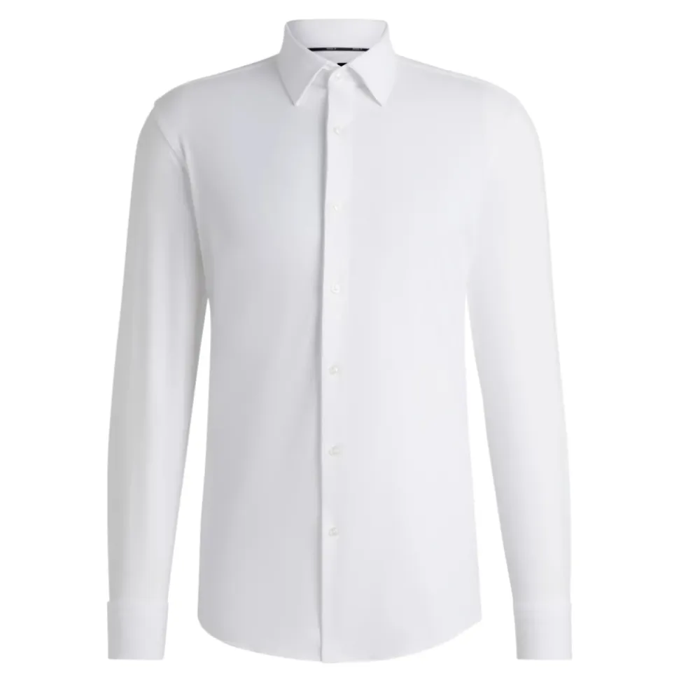 Forbedr din forretningsgarderobe med denne avancerede Hugo-formelle skjorte med fugtstyring fra BOSS Menswear. Fremstillet af struktureret italiensk fremstillet performance-stretch stof, denne slim fit skjorte med Kent-krave og runde manchetter udstråler kvalitet. Sammensætning: 87% Polyamid, 13% Elastan. Stofdetaljer: 92% Polyamid, 8% Elastan.