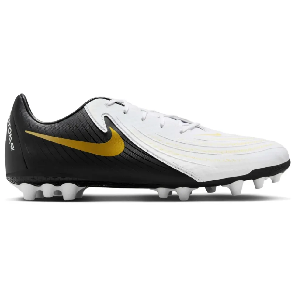 Nike Phantom GX 2 Academy (style FJ2552-100) er fodboldsko med lav profil, der er konstrueret til hurtig trækkraft og præcis boldkontrol på kunstgræsbaner. De kombinerer en NikeSkin-slagzone med et Cyclone 360-knopsystem for at understøtte smidige vendinger og en tæt boldføling. Nøgleattributter: Hvid | Sort | Guld | Syntetisk (NikeSkin) | Cyclone 360-trækkraft til hurtige vendinger | Forbedret boldføling og -kontrol | Velegnet til kunstgræsbaner | Koniske og tre-stjernede knopper til hurtige retningsskift | Støddæmpende indersål for komfort | Knopkonfiguration optimeret til kunstgræs | Lav silhuet | NikeSkin-slagzone | Tekstureret slåområde | Snørelukning | Mål og pasform: Tætsiddende pasform; overvej at bestille en halv størrelse større.