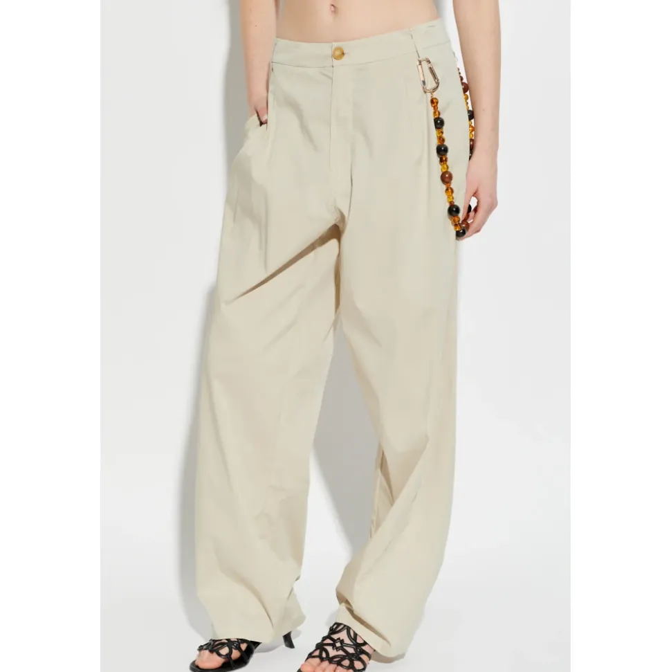 DARKPARK Phebe Trousers kombinerer afslappet, bredbenet skrædderi med en markant detalje med perlekæde, ideel til polerede hverdags- og aftenlooks. Nøgleattributter: Grå | Grå | Polyester | Åndbart stof | Blød, behagelig fornemmelse | Knap- og lynlåslukning foran | Skrålommer/sidelommer foran | Lige, brede ben med subtile læg foran | Dekorativ nøglering formet som en kæde med perleelementer ved højre lomme | Blød, mat tekstureret finish | Dimensioner & pasform: Modelhøjde: 177 cm | Modelbryst: 83 cm | Model talje: 61 cm | Model hofter: 89 cm | Modellen er iført størrelse: 40 | Afslappet pasform | Stor i størrelsen; overvej at gå en størrelse ned for en højere talje eller mere almindelig pasform | Sammensætning & pleje: 62% Polyester | 25% Viskose | 8% Uld | 5% Elastan