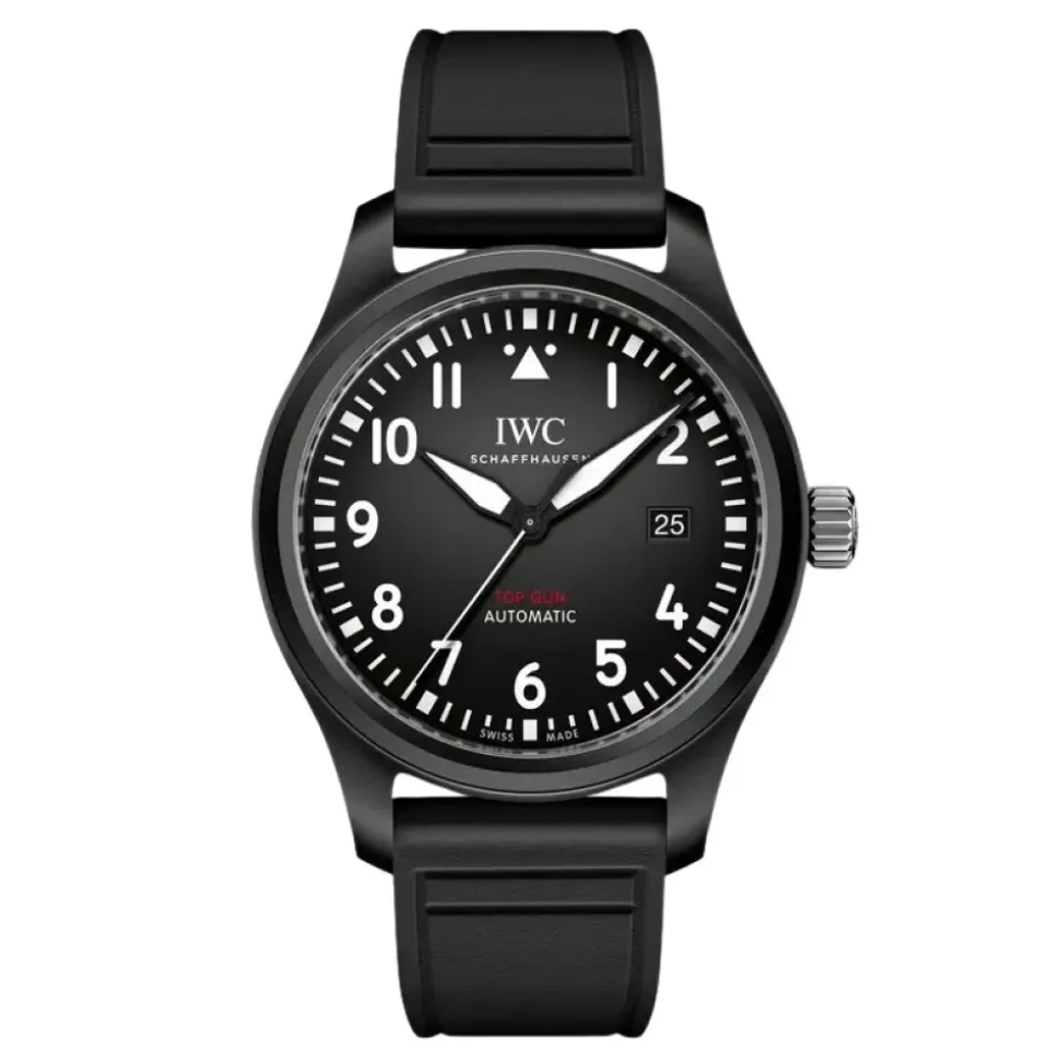 IWC Schaffhausen Pilot’s Watch Automatic TOP GUN kombinerer et 41 mm sort keramisk urkasse med et automatisk urværk for et holdbart, luftfartsinspireret hverdagsur. Nøgleattributter: Sort | Keramisk | Vandafvisende til 6 bar | Safirglas | Automatisk optræk | Sort urskive | Arabiske tal timemarkører | Dimensioner & pasform: Urkassediameter: 41 mm | Urkassetykkelse: 11,4 mm | Justerbar rem med spænde | Sammensætning & pleje: Keramisk urkasse | Safirglas | Gummirem | Stållås | Aftørres med en blød klud; undgå opløsningsmidler og ekstreme temperaturer; få den serviceret af et autoriseret servicecenter.