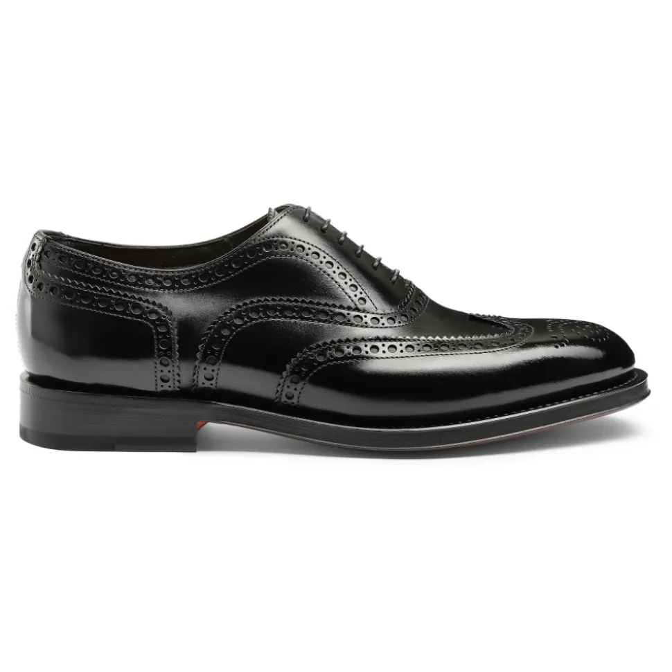 Santoni Poleret Læder Oxford Brogue kombinerer håndpoleret læder og klassiske brogue-perforeringer med en fleksibel Goodyear-konstruktion for en let og holdbar sko. citeturn0search0 Vigtige egenskaber: Sort | Læder | Let fornemmelse | Forbedret bevægelsesfrihed | Holdbar konstruktion | Fleksibel Goodyear-konstruktion (foldbar sål) | Udskiftelig sål | Brogue-perforeringer | Snørelukning | Rund tå | Dimensioner og pasform: Bred pasform (pianta ampia) | Rund tå | Sammensætning og pleje: Ydre: Kalvelæder 100% | For: Kalvelæder 100% | Sål: Læder
