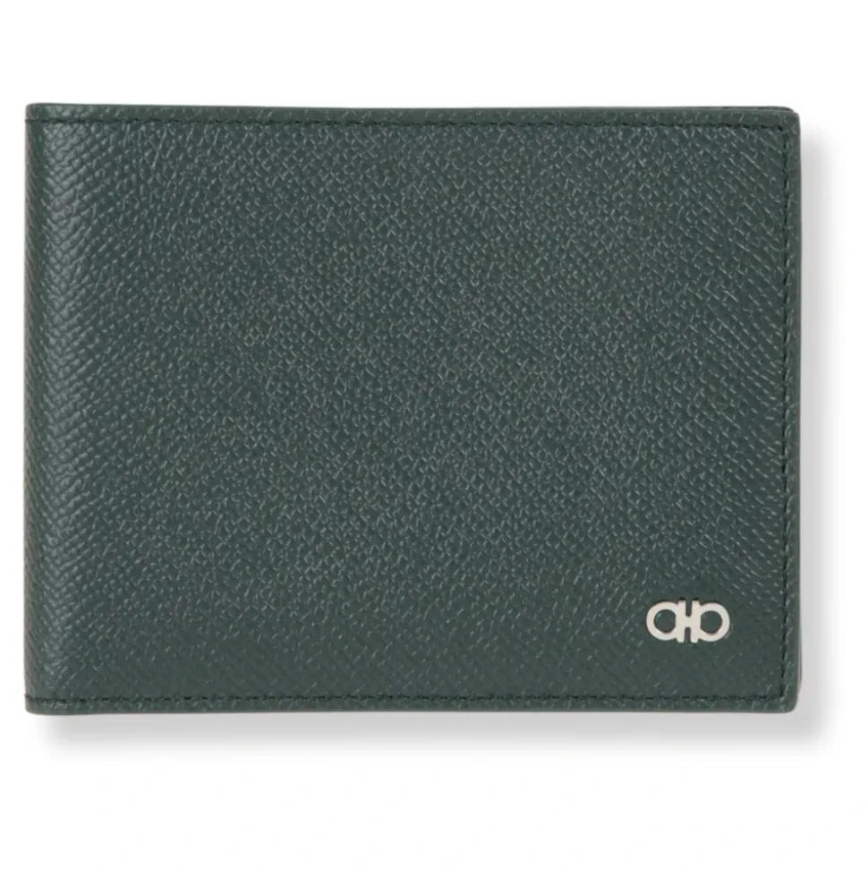 Ferragamo Portafoglio Gancini er en pung i hamret læder med det ikoniske Gancini-logo. Den har et kontrastfarvet interiør og flere rum til pengesedler, kort og dokumenter. Nøgleattributter: Grøn | Moss | Læder | Flere rum til kort, pengesedler og dokumenter | Dedikerede kortlommer | Hamret lædertekstur | Gancini-logo foran | Kontrastfarvet interiør | Sammensætning og pleje: Læder